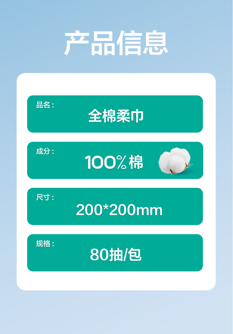 全棉时代日用纯棉柔巾45GSM平纹 尺寸:200MM×200MM 数量:80片/包,3包/组 产品说明: 全棉时代抽纸 洗脸巾一次性毛巾干湿两用棉柔巾洁面抽擦脸巾80片/包*3包