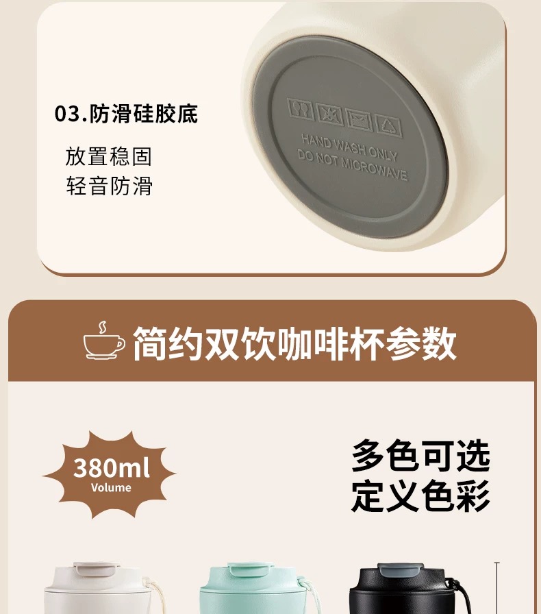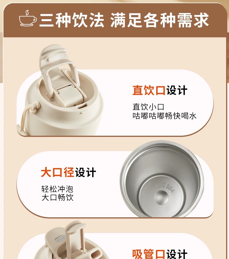 杯身主体材质:304不锈钢 杯盖材质:pp 内胆材质:304不锈钢 颜色:白、黑、绿(绿色暂缺) 包装:彩盒 (代发价指常规区域,偏远区域新疆/西藏+12元/单;宁夏/内蒙古/青海省/甘肃/海南+5元/单)