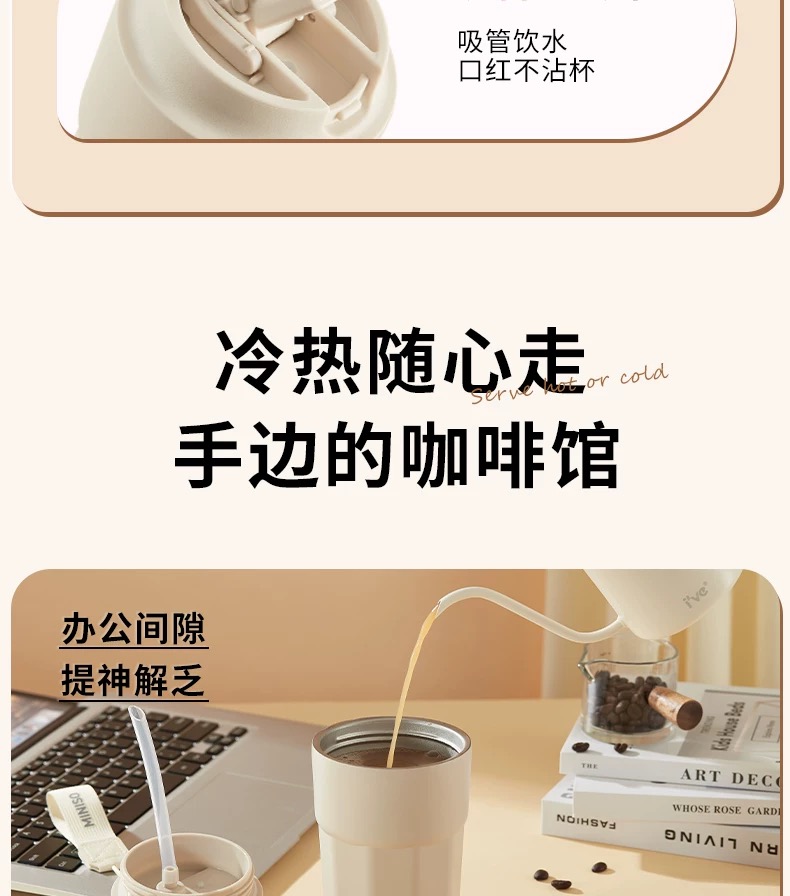 名创优品(MINISO)不锈钢双饮保温杯咖啡杯380ML
