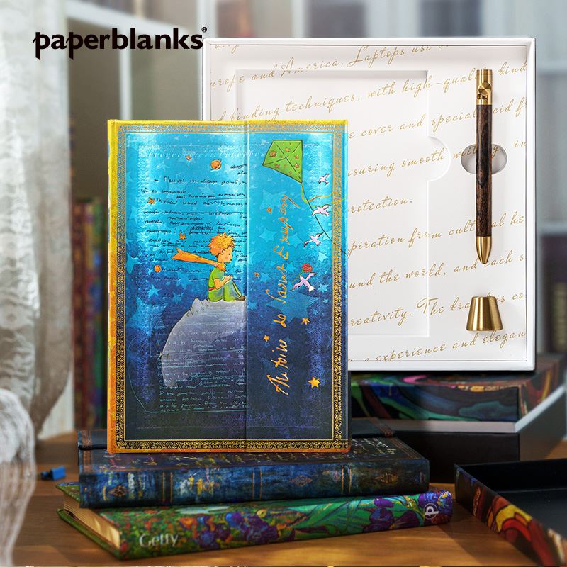 笔记本封面选用该作品出版书籍的2副标志性插花作为背景,包括小王子的形象、他所在的星球、玫瑰等。翻盖印有作者签名,增添了艺术气息和收藏价值。目前,该手稿收藏于纽约市摩根图书馆