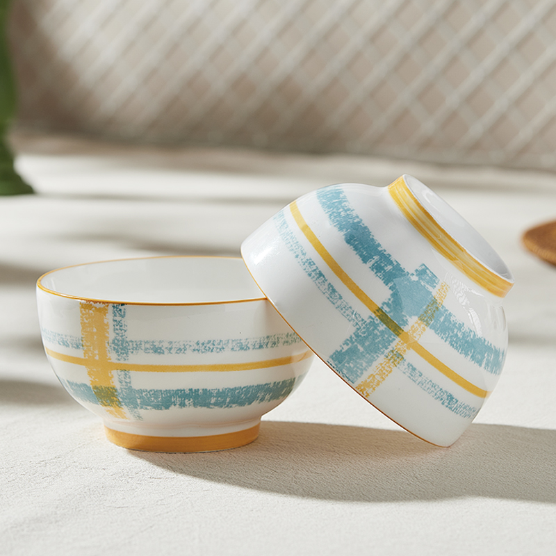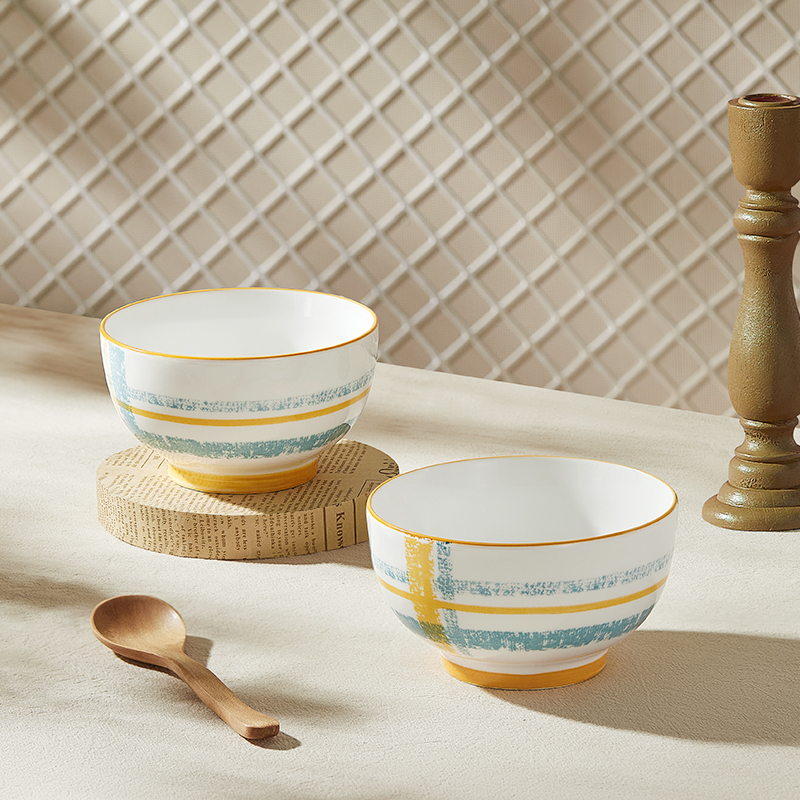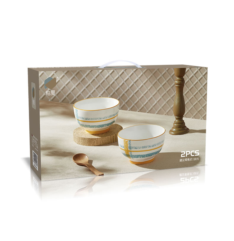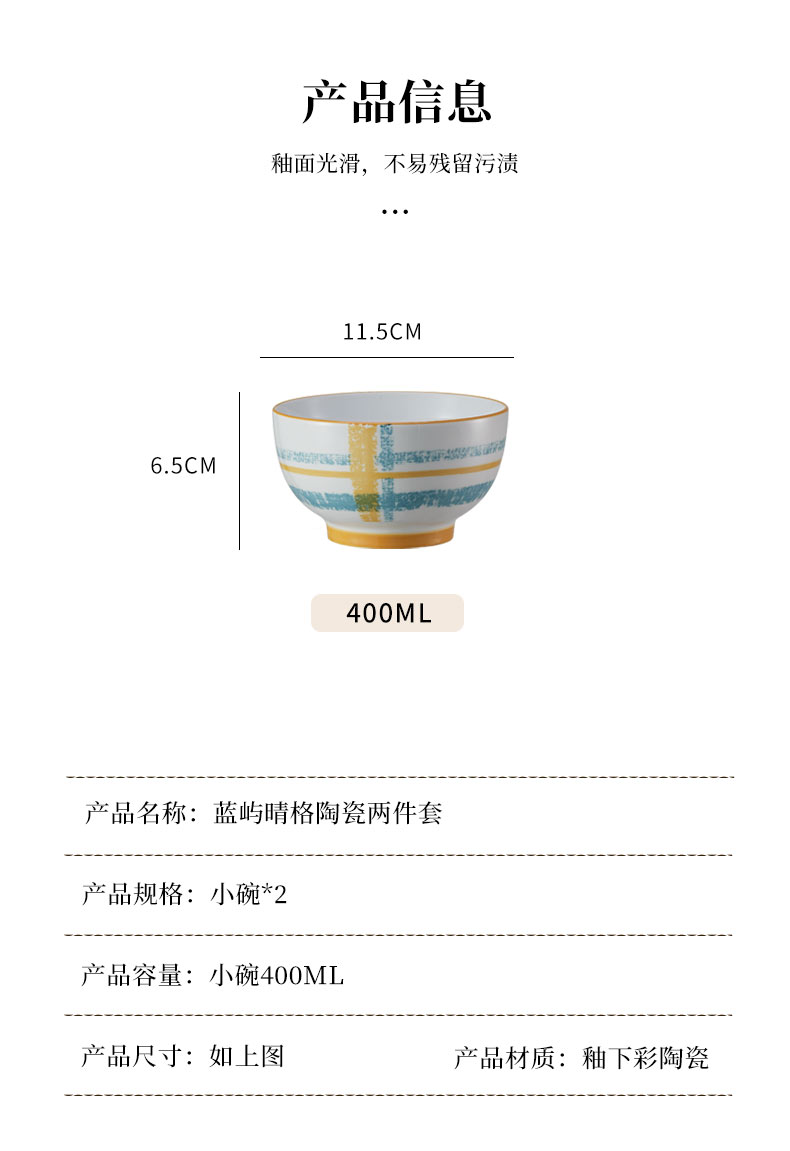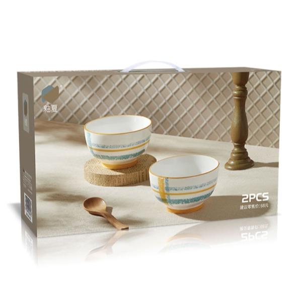 材 质:高温瓷 产品参数:4.5英寸小碗*2 彩盒尺寸:223*71*126mm 外箱尺寸:46*45*40cm 产品卖点:1.厚实瓷质,隔热防烫,外观色彩清新、光洁透亮、花面细腻。2.适用于洗碗机,消毒碗柜、微波炉、冰箱等。3.釉面光滑细腻,久用不褪色,釉下彩工艺,描边碗沿,田园复古风格,底部不上釉防滑设计,防滑更平稳。4.性价比高,适合福利集采银行保险项目。