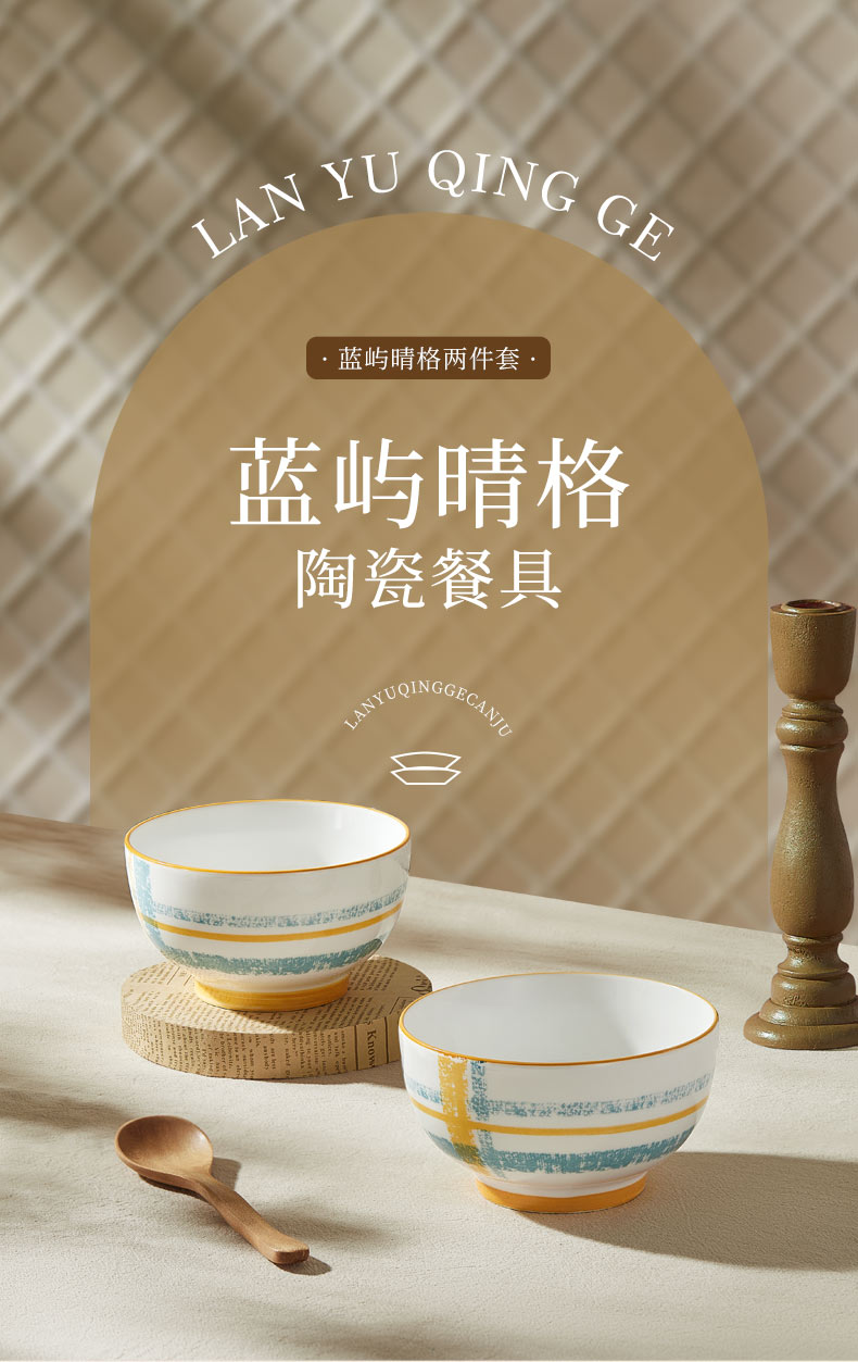 釉夏蓝屿晴格陶瓷餐具两件套Y-LY/L2