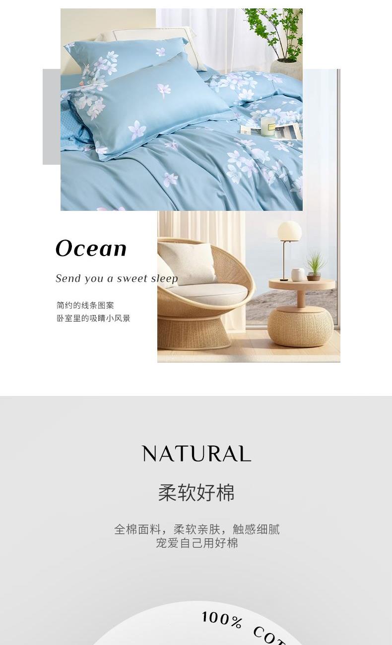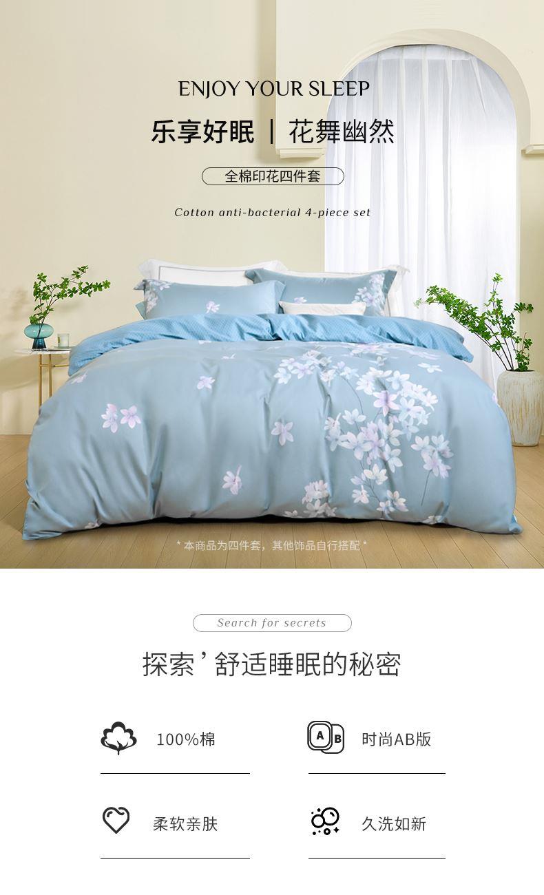 水星家纺全棉四件套花舞幽然200*230cm