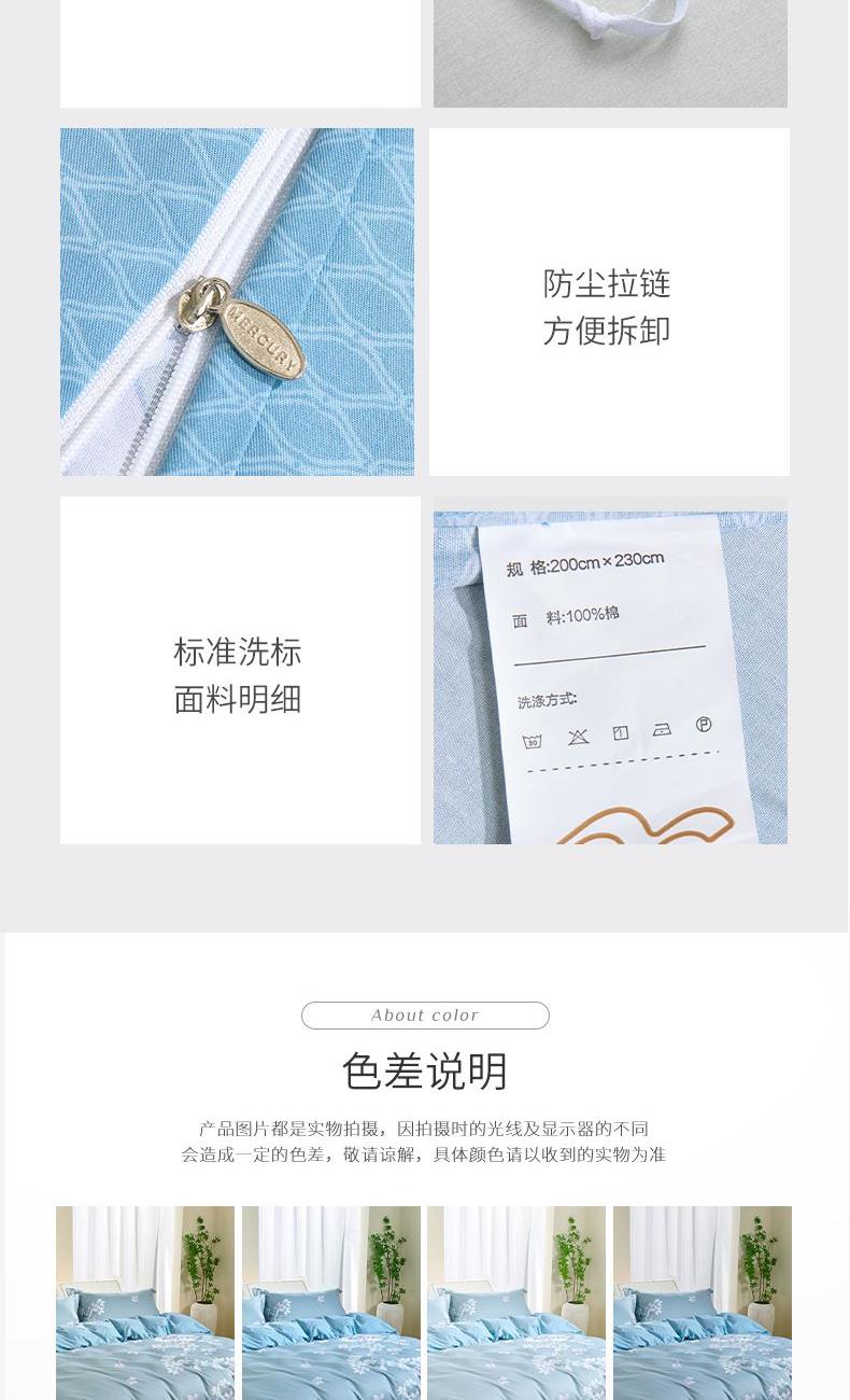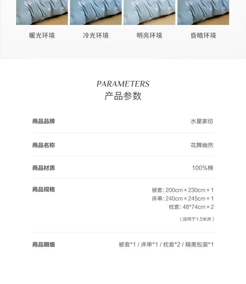 材质:棉 规格:1.5m床:被套:200*230cm、床单:240*245cm、枕套:48*74cm*2