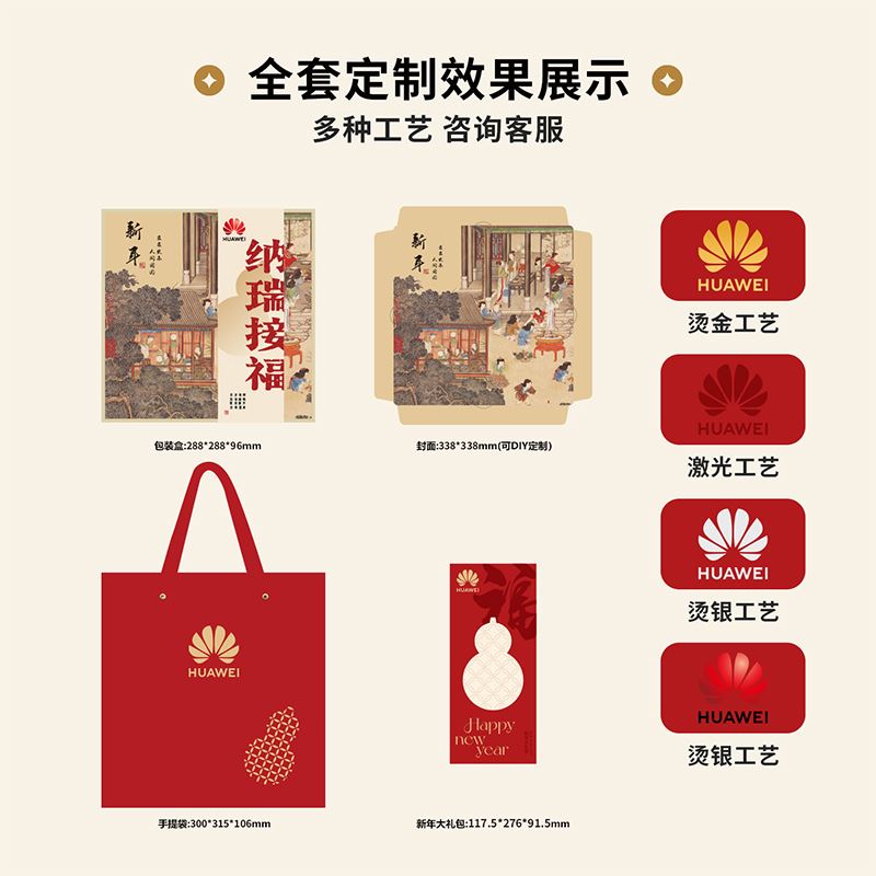新年大礼包 119x276x93mm 五福临门锤、新春对联、新年红包*6 新春盖碗茶杯 94x90mm(140ml) 陶瓷/烤花 大红袍 47x57mm 武夷岩茶 提福折叠灯 157x128x93mm 触摸感应