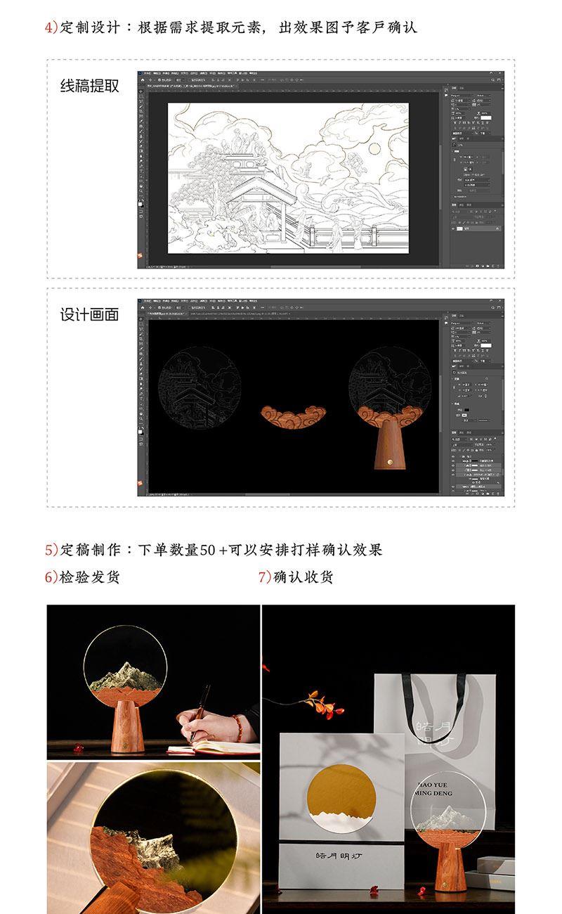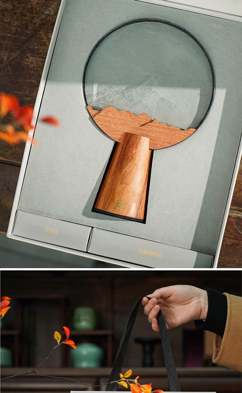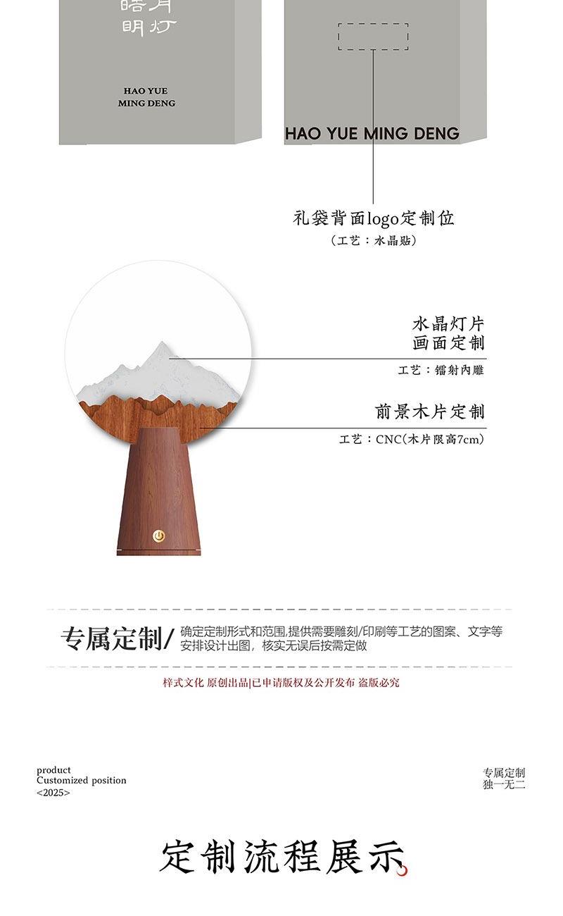 产品材质:花梨木、水晶片 礼盒尺寸:25*10*32 cm 礼盒重量:1.5kg 底座0.45*1.05*cm 水晶片1.7*0.08cm 产品标配:木质灯座、木质装饰片、水晶灯片、礼盒、礼袋 定制位:摆件底座、灯片图案、礼袋 送礼场景:恩师赠礼、纪念礼、乔迁礼、会议伴手礼、高校礼物 送礼寓意:念伯乐故人,千里至此明月