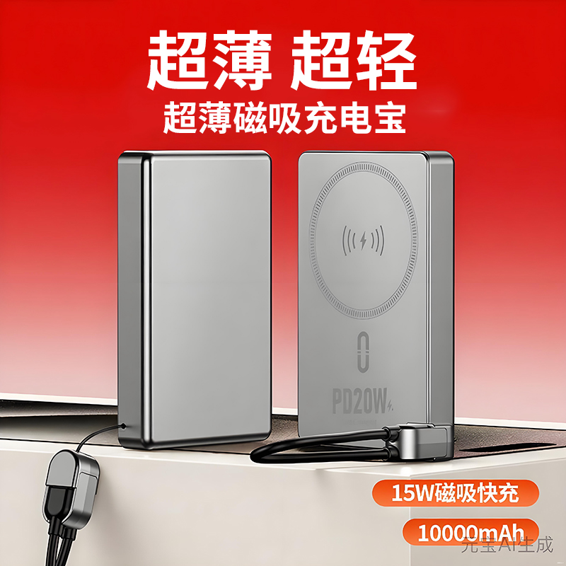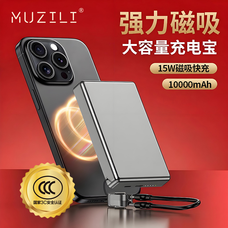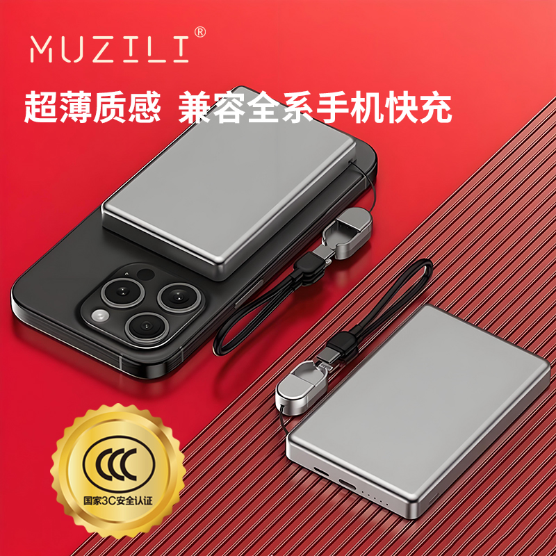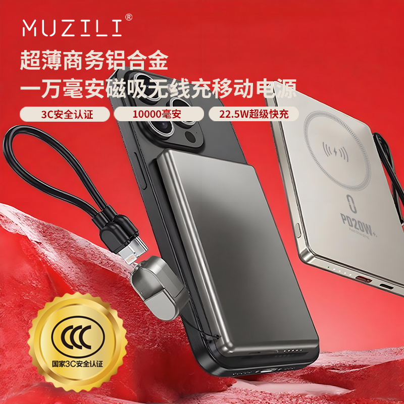 MUZILI·小福马超薄商务铝合金磁吸自带线移动电源