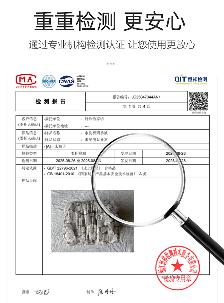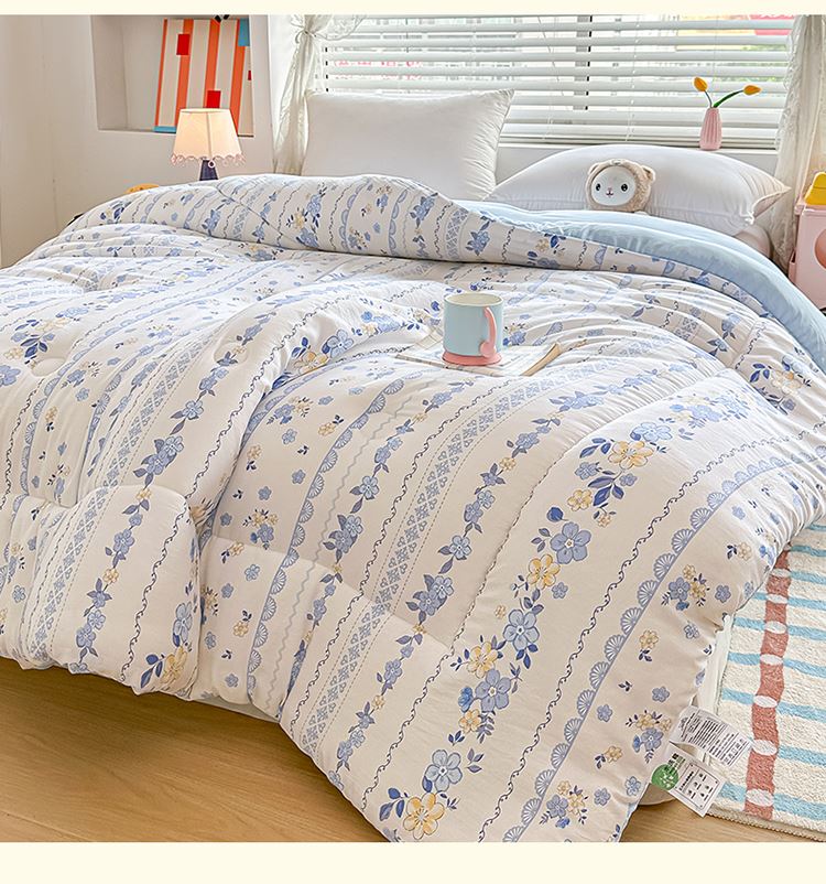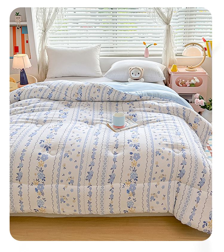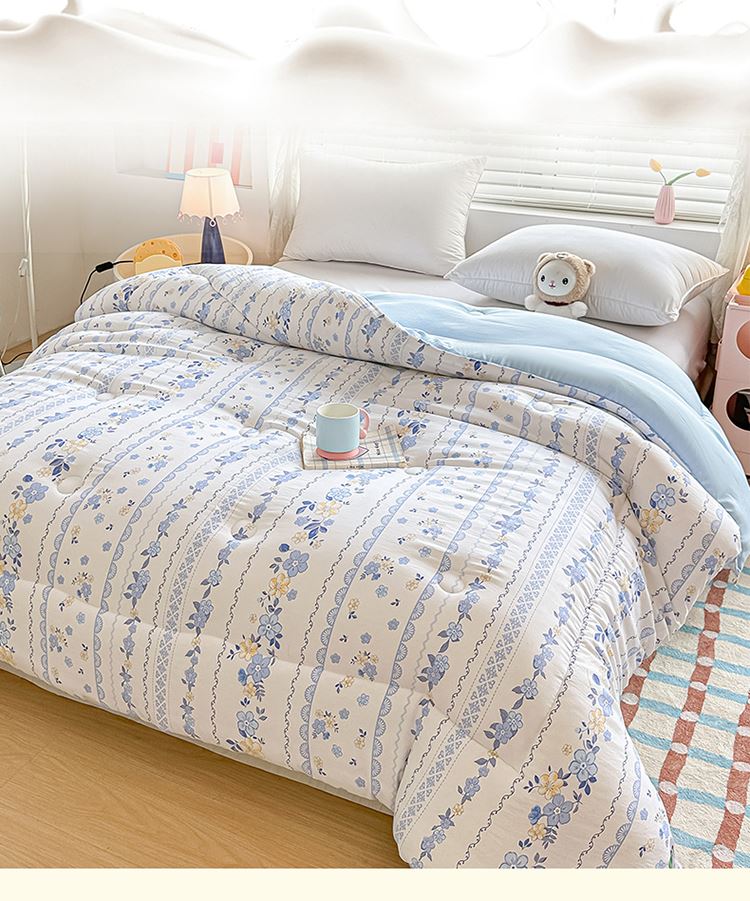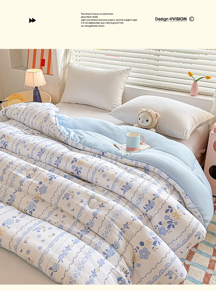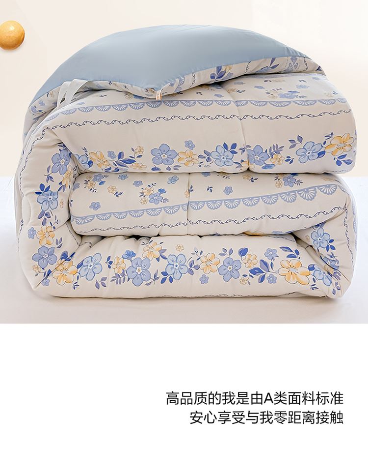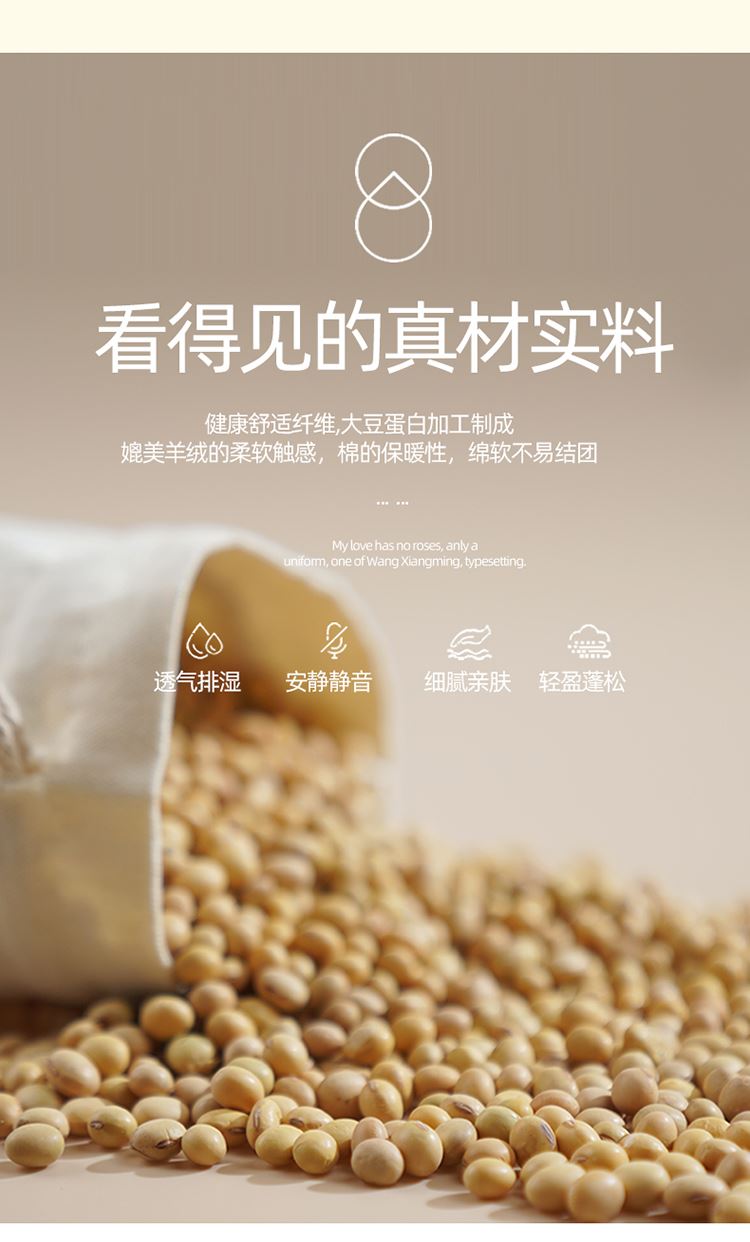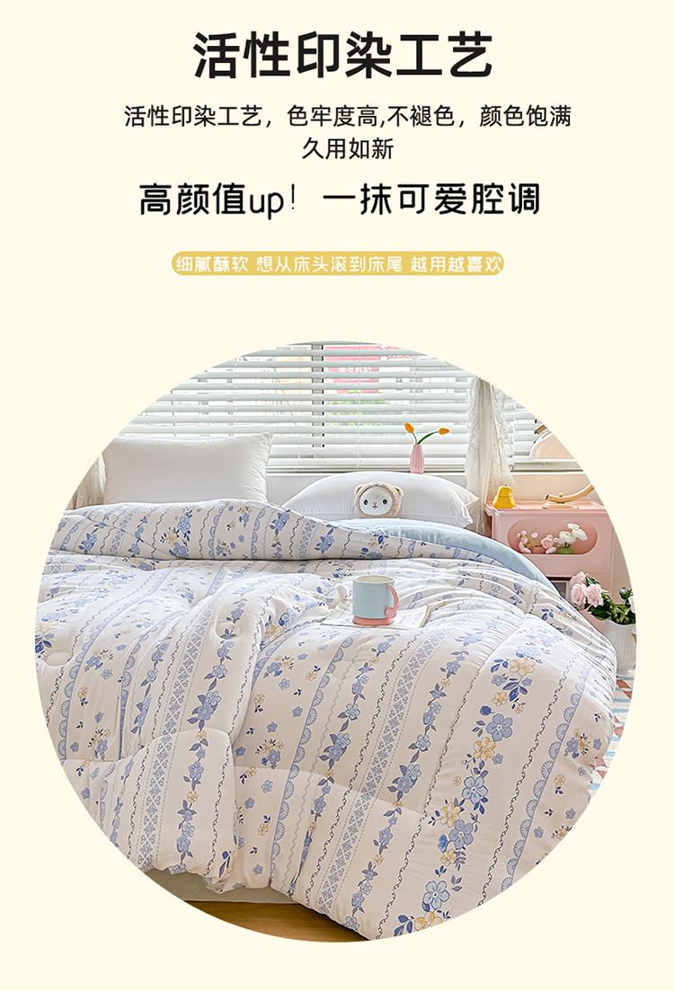 1:适合裸睡,手感舒适细腻软糯透气性好,陪伴你一天好心情 睡眠质量up!会呼吸更透气 2:大豆纤维填充软糯睡眠up!享受健康睡眠 3:健康舒适纤维,大豆蛋白加工制成媲美羊绒的柔软触感,棉的保暖性,绵软不易结团 4尺寸 :200*230cm 重量:约2.5kg 包装: 彩盒
