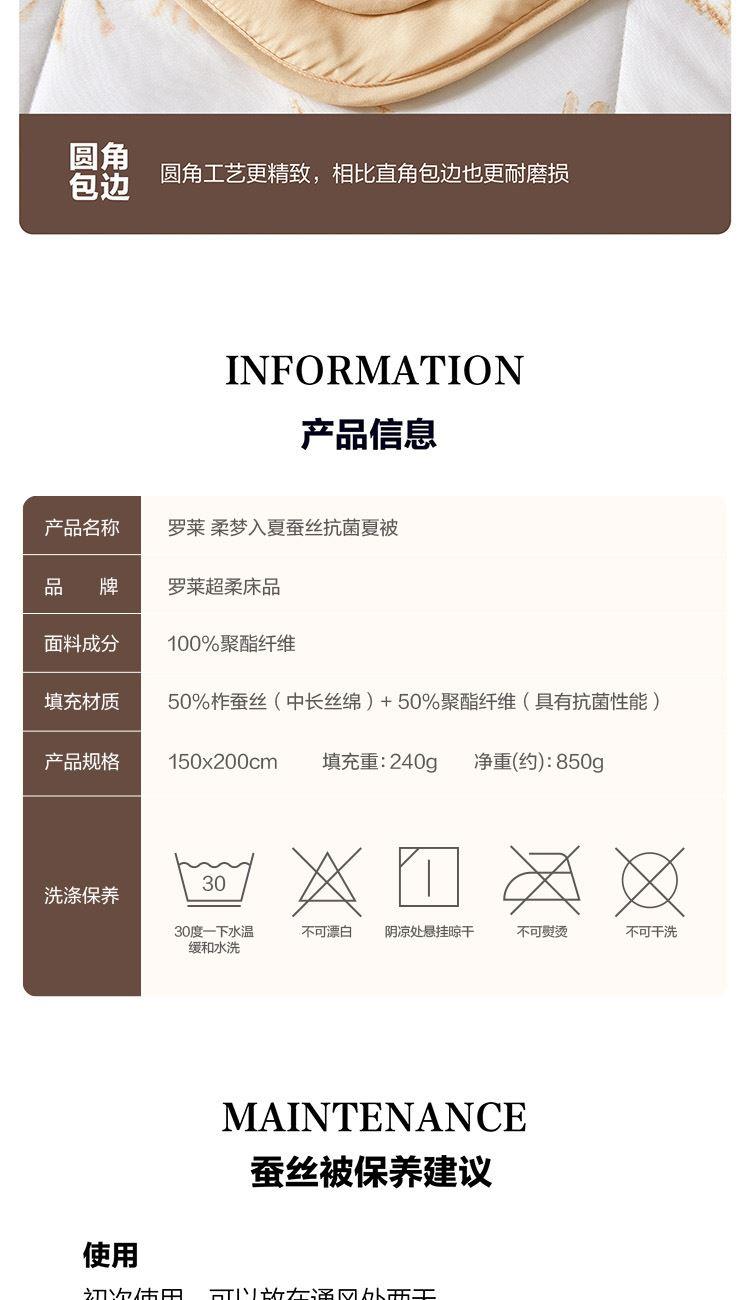 罗莱柔梦入夏蚕丝夏被150*200cm