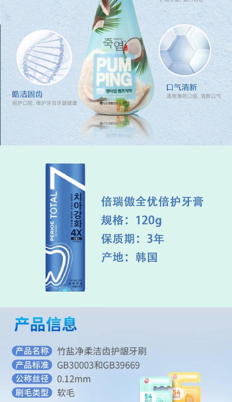 睿嫣润膏经典舒盈臻护洗发水250ml*2支 倍瑞傲全优倍护牙膏120g*2支 竹盐小苏打洁白派缤牙膏(沁柠薄荷香)285g*2瓶 竹盐小苏打净白牙刷 成人*2支 竹盐净柔洁齿护龈牙刷 成人*2支