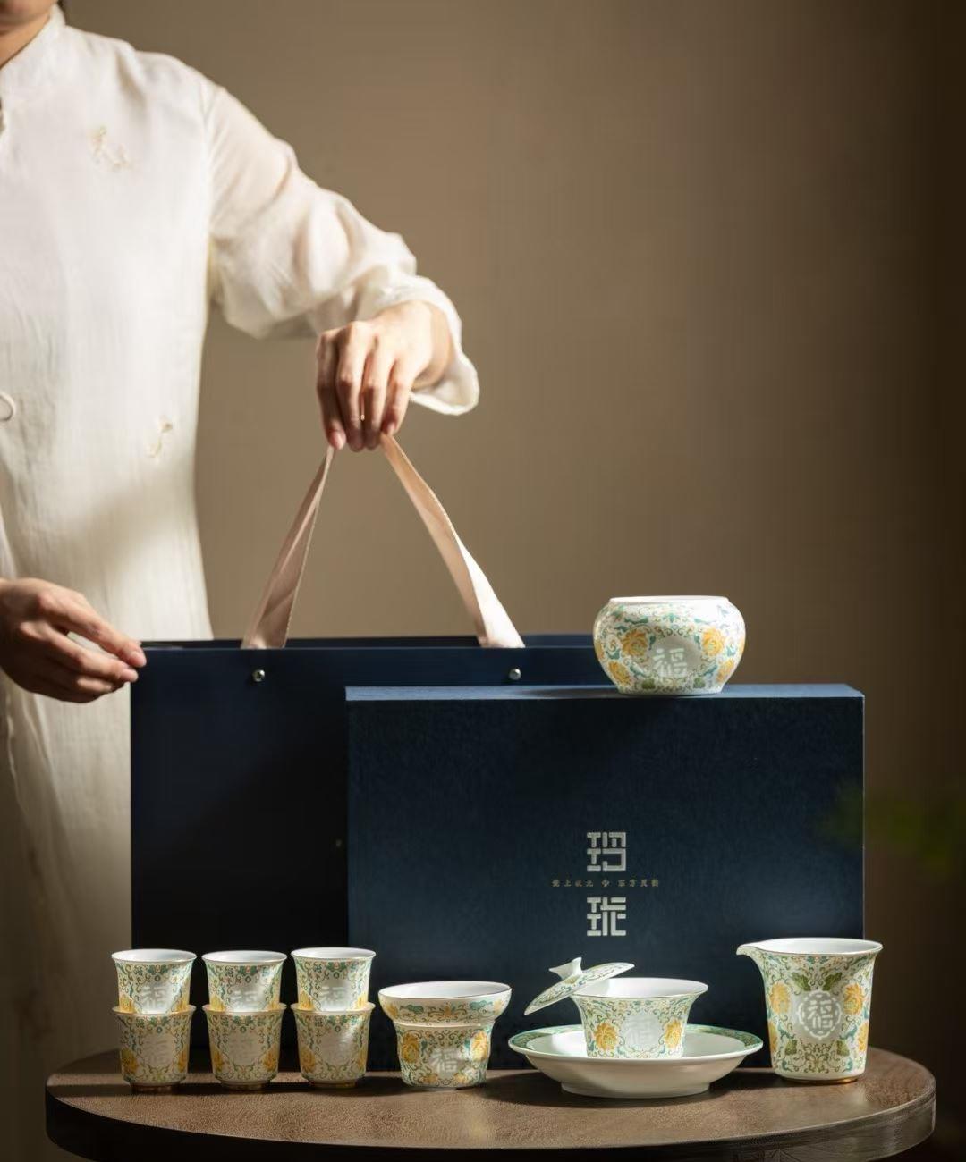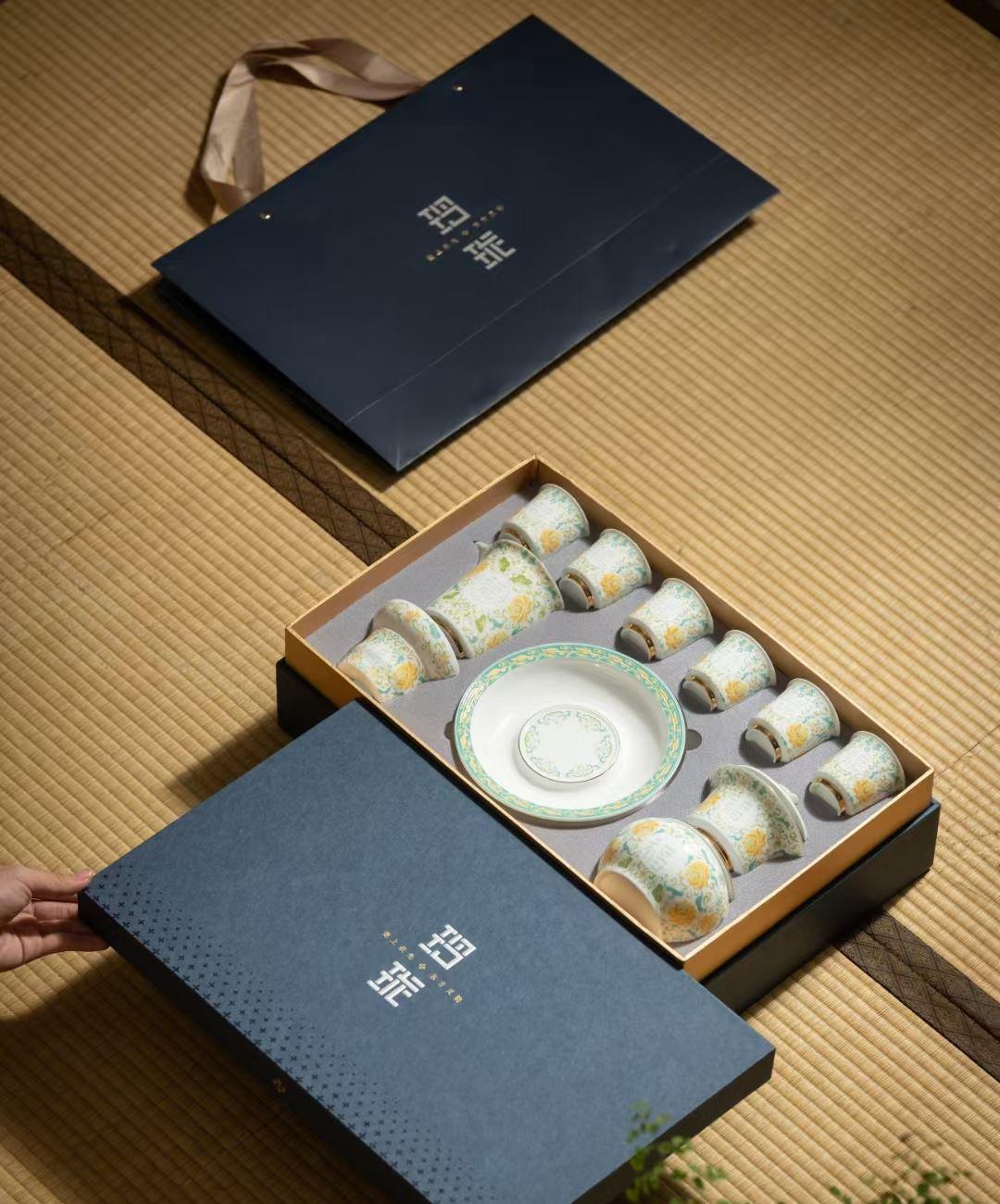 尾桥下窑青花玲珑瓷功夫茶具大套装商务会议礼品开门红节日伴手礼