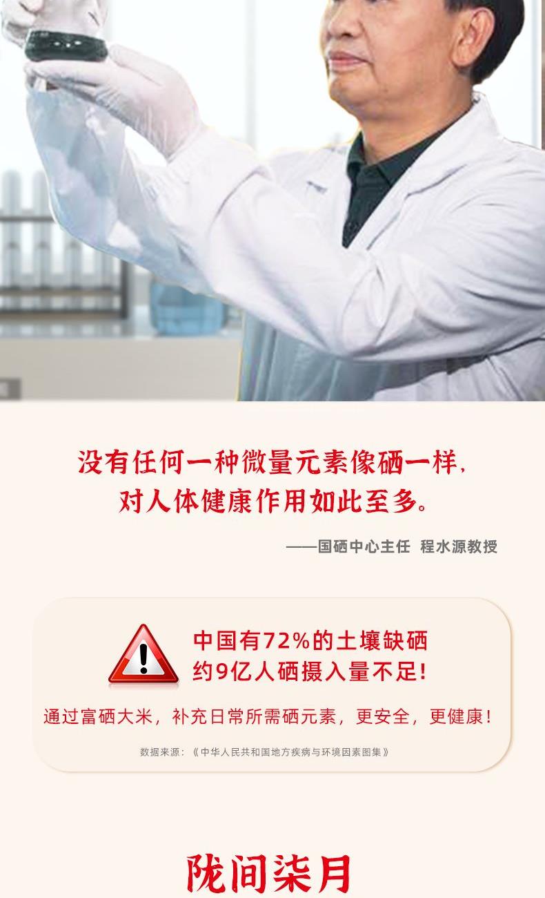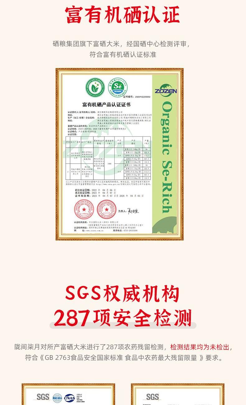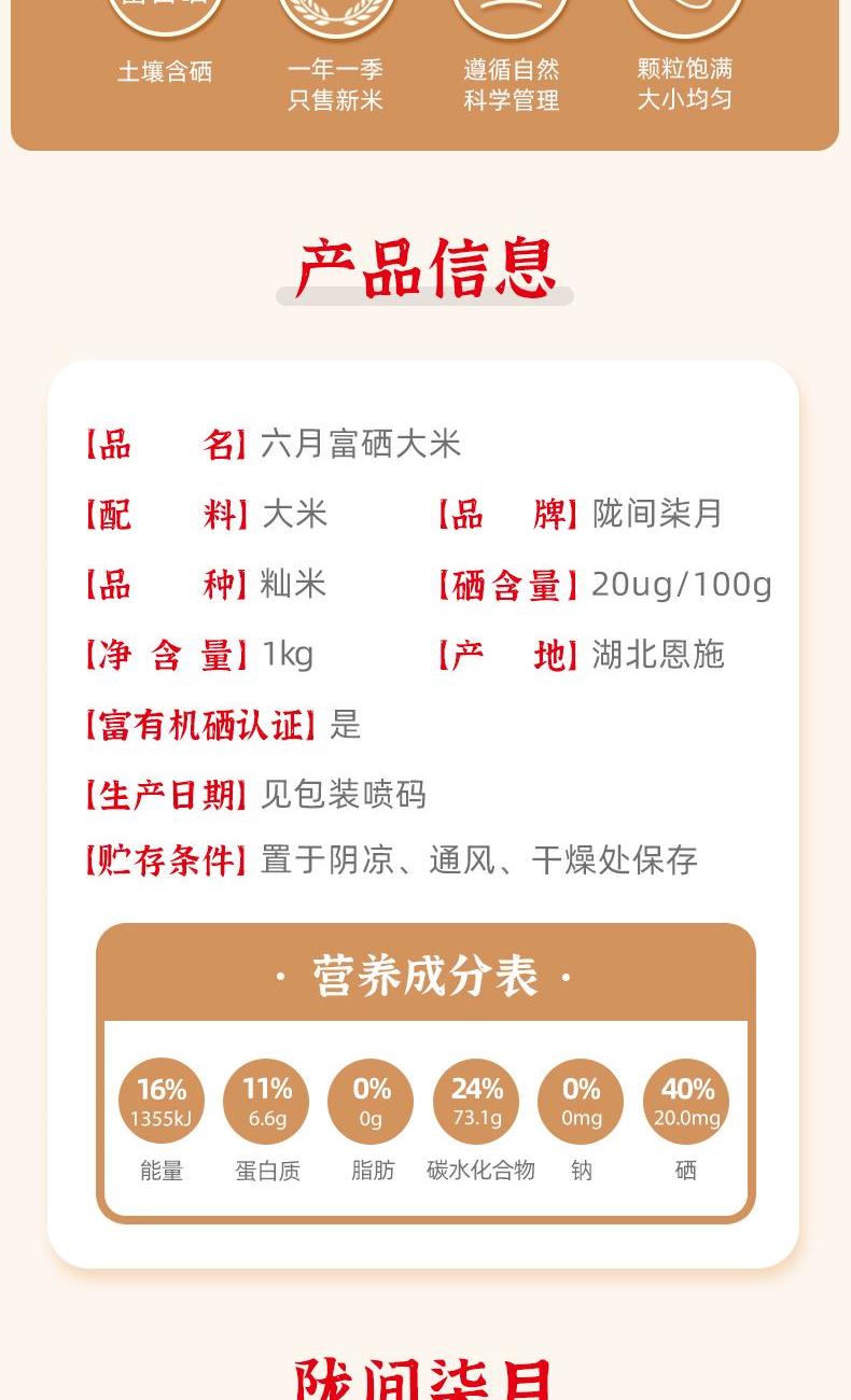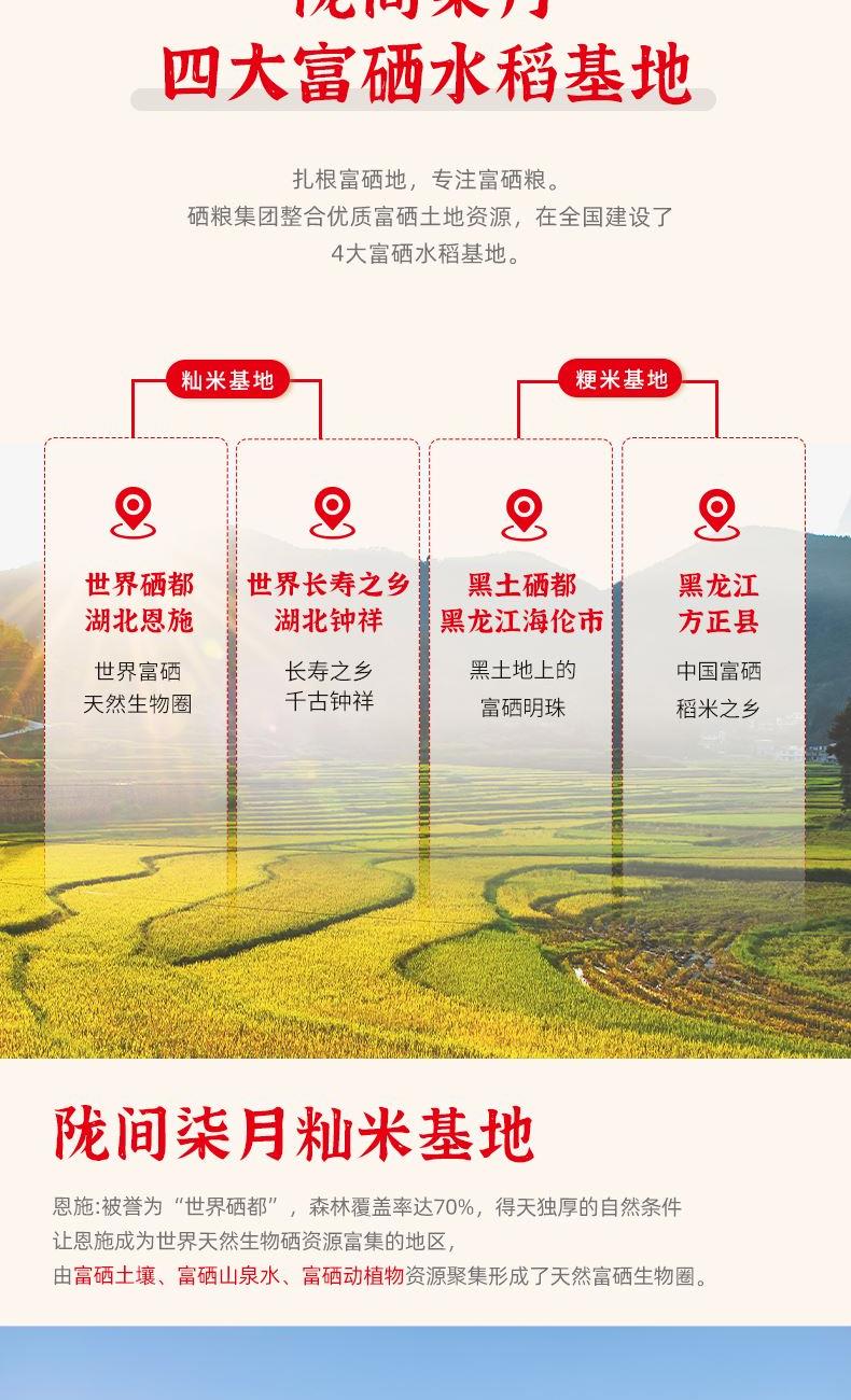 1、世界硒都,恩施原产,湖北省放心粮油企业出品; 2、一年一季,鲜稻现碾,生长周期长达7个月,真空包装,米香浓郁; 3、富有机硒认证,富有机硒,每100g平均硒含量≥20ug; 4、富硒大米营养价值高,科学补硒