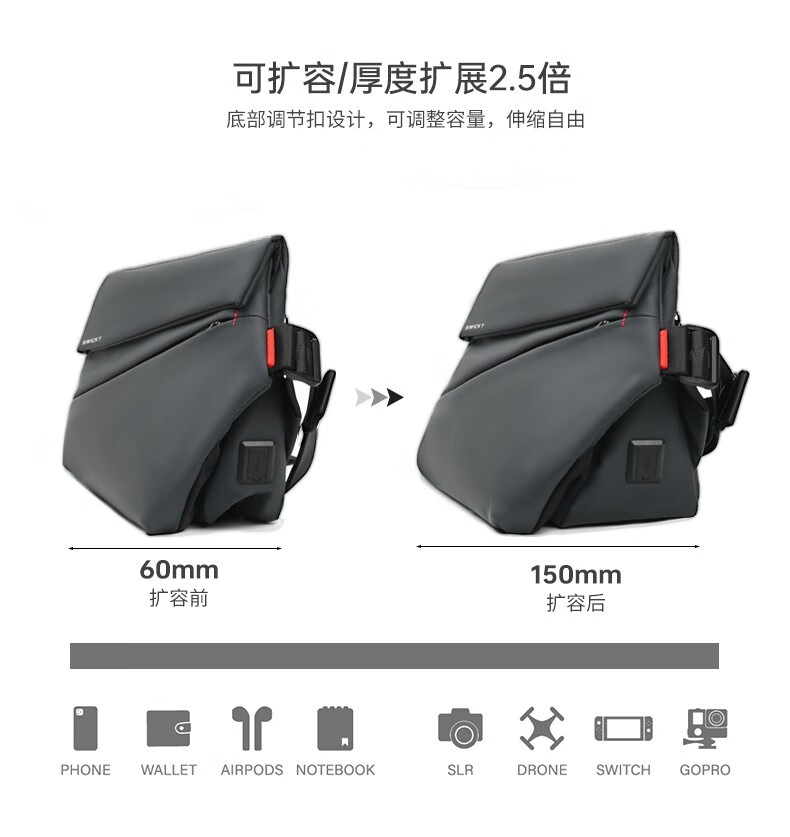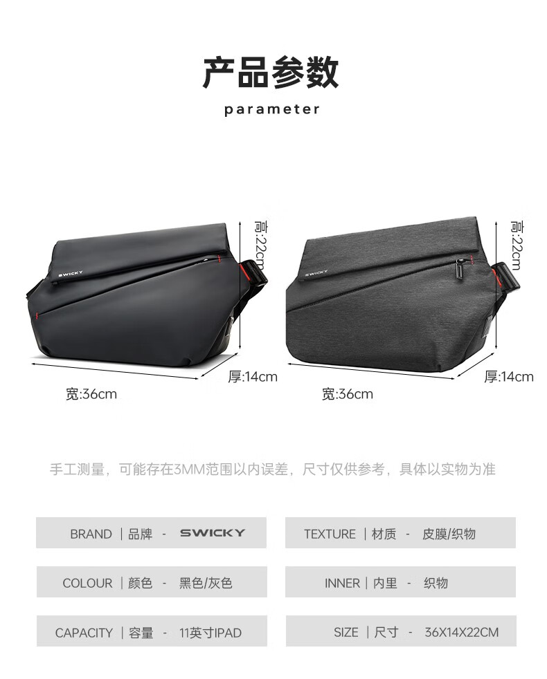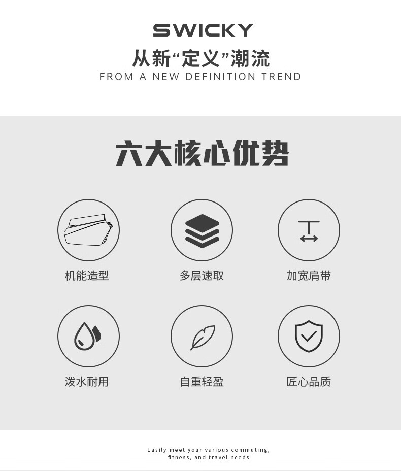 SWICKY潮牌斜挎包胸包大容量磁扣升级版33015