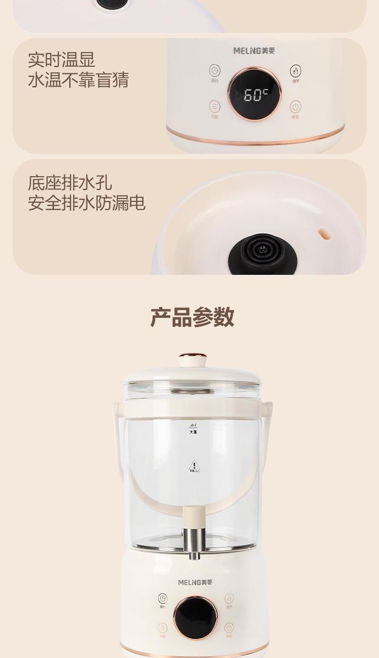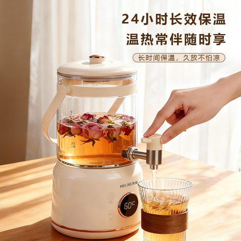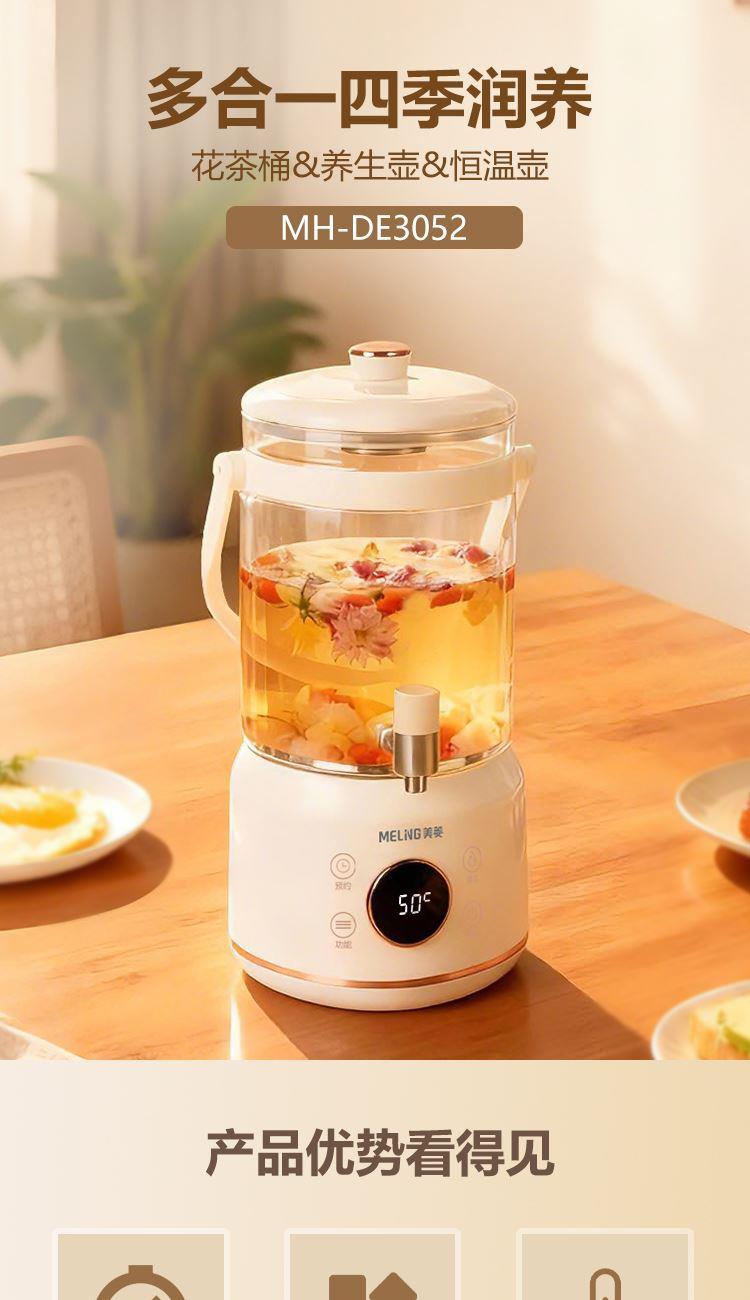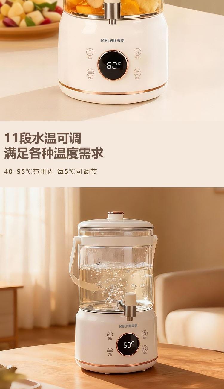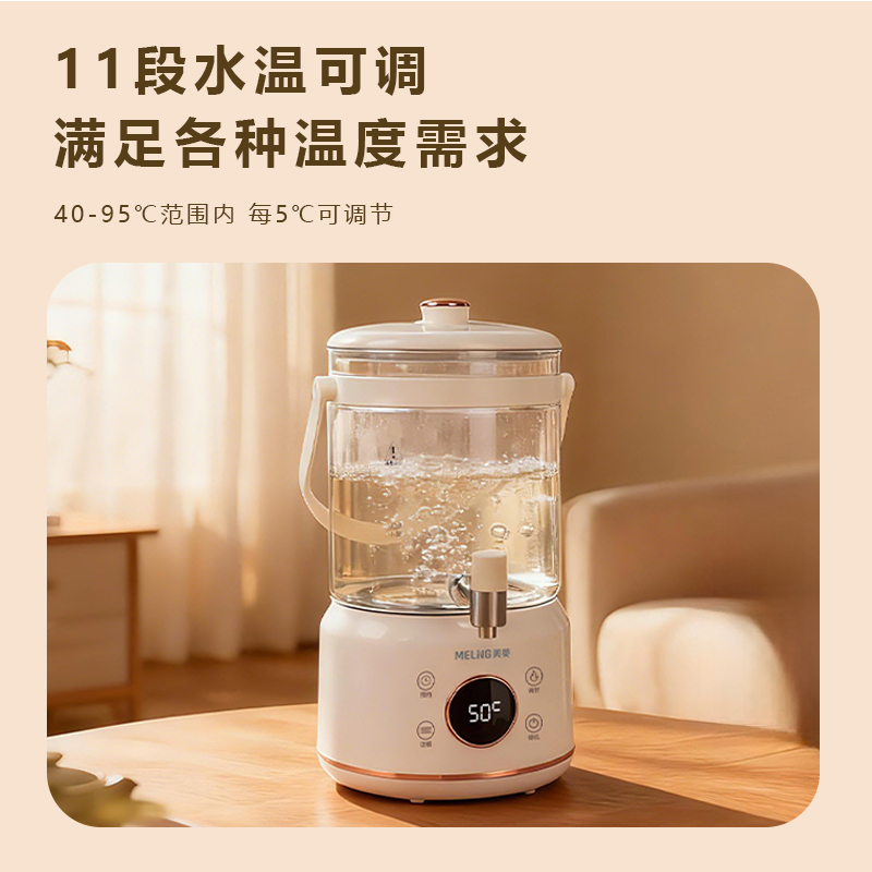 1、6个功能:烧水、花茶、煮茶、凉茶、凉白开、冲奶、,含24小时保温,24小时预约功能,40-90℃调温,