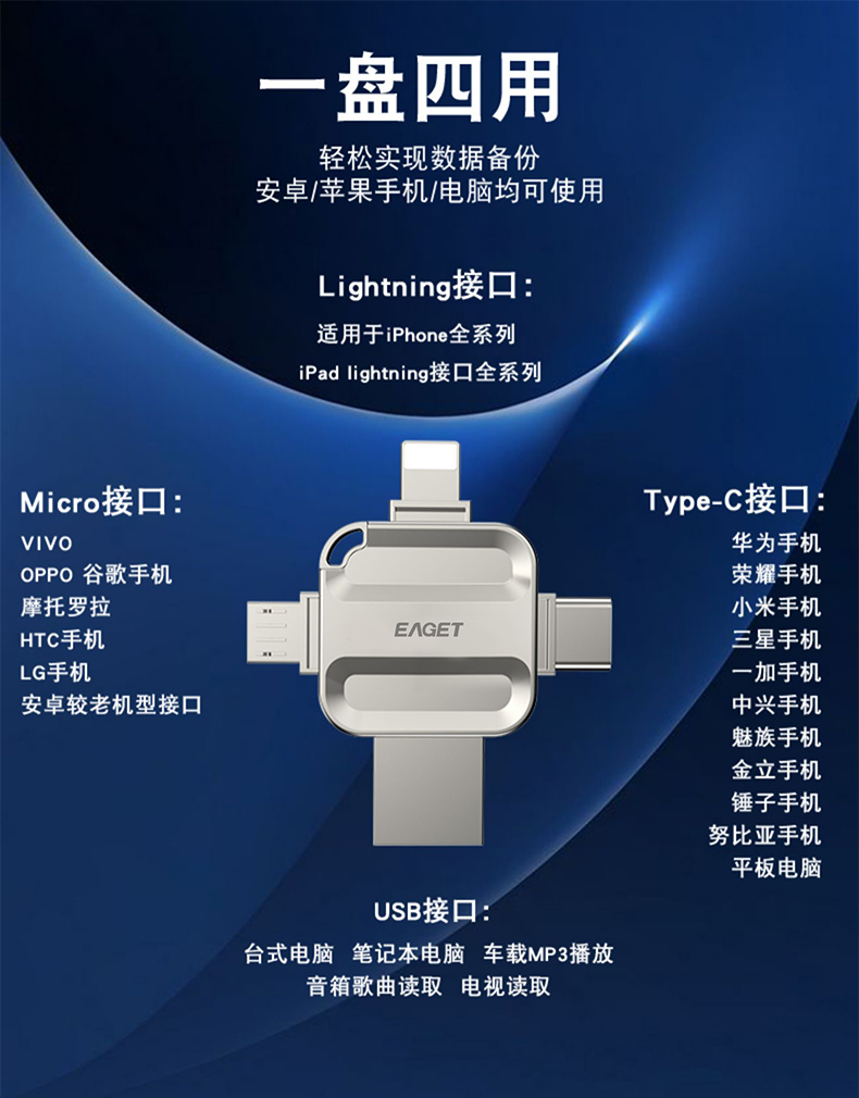 (EAGET)忆捷i71手机电脑通用四接口U盘32G