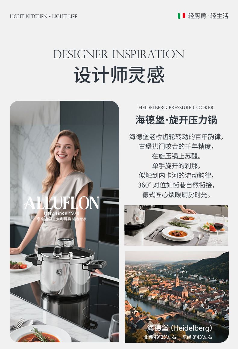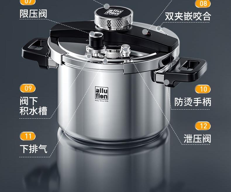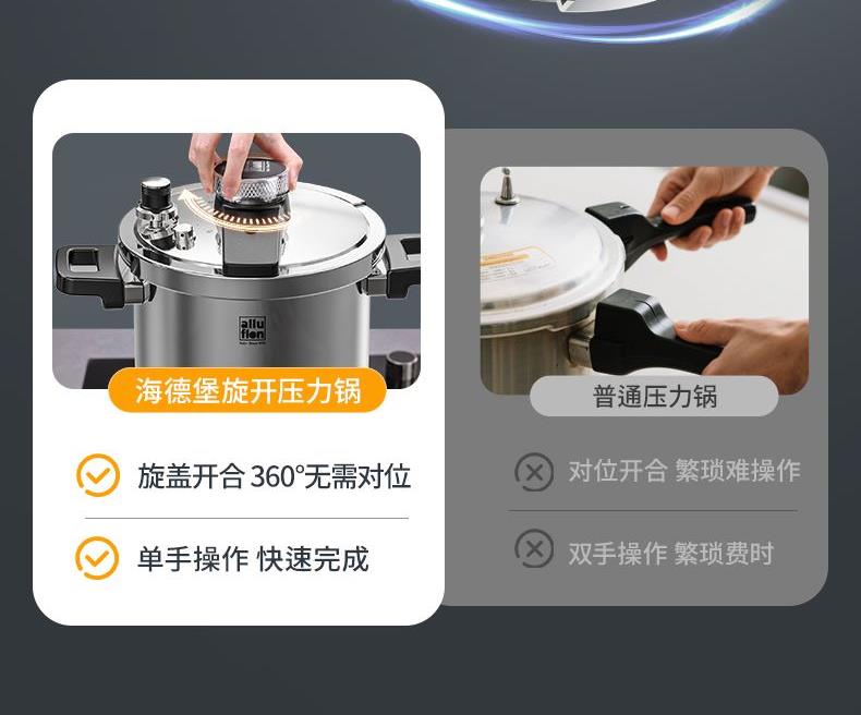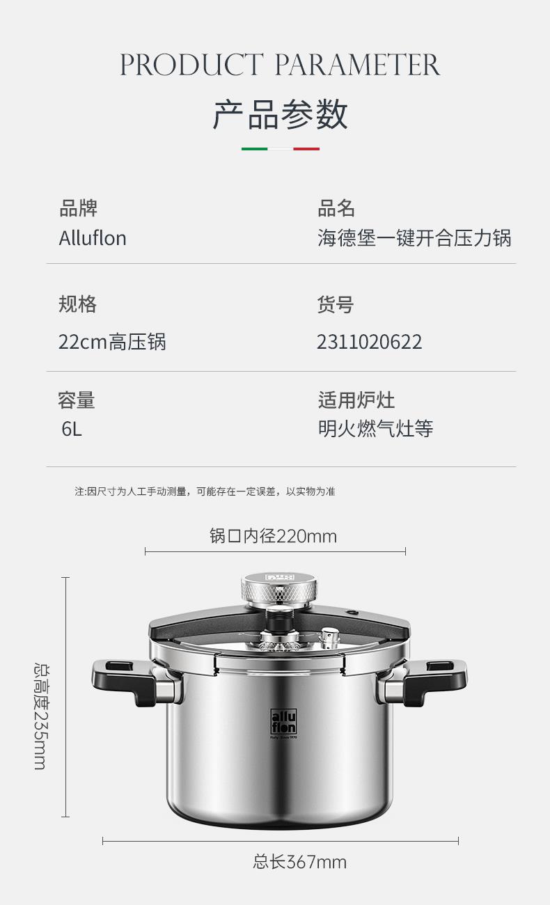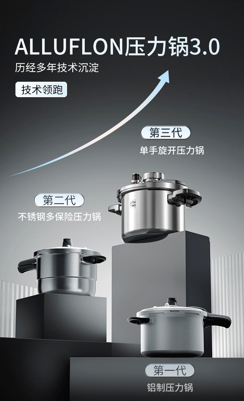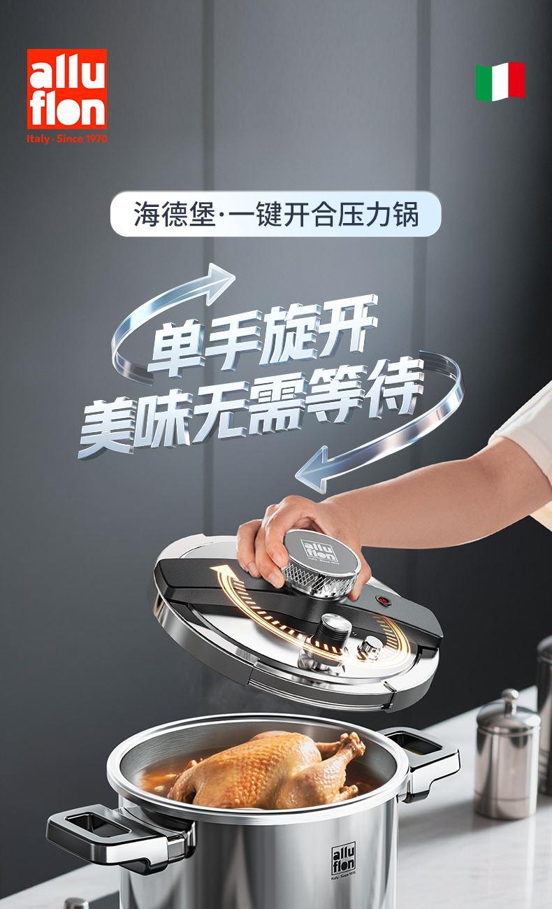 Alluflon阿路弗仑海德堡一键开合复合钢压力锅6L