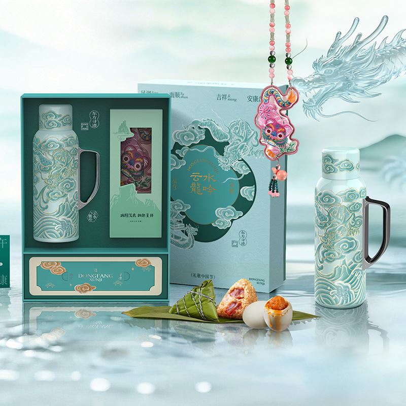 配置 · ① 陶瓷内胆焖壶×1把(820ml) (SUS-316内胆丨304外壳丨内胆/杯盖内壁喷瓷) ② 草本串珠香囊×1套(密封独立装) (刺绣艾虎香囊丨天然矿石串珠丨草本合香内料) ③ 发芽糙米粽×2只(100g/只) ④ 超大海鸭蛋×2只(80g/只) ⑤ 端午礼卡×1份 ⑥ 云水龙吟礼盒×1套(含袋) 尺寸 · 380×275×95mm