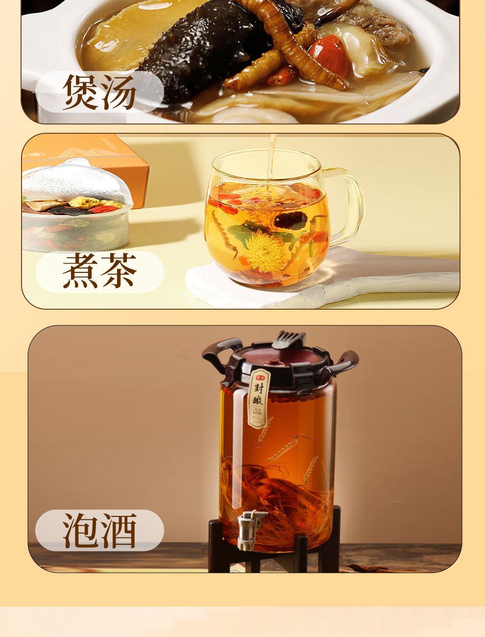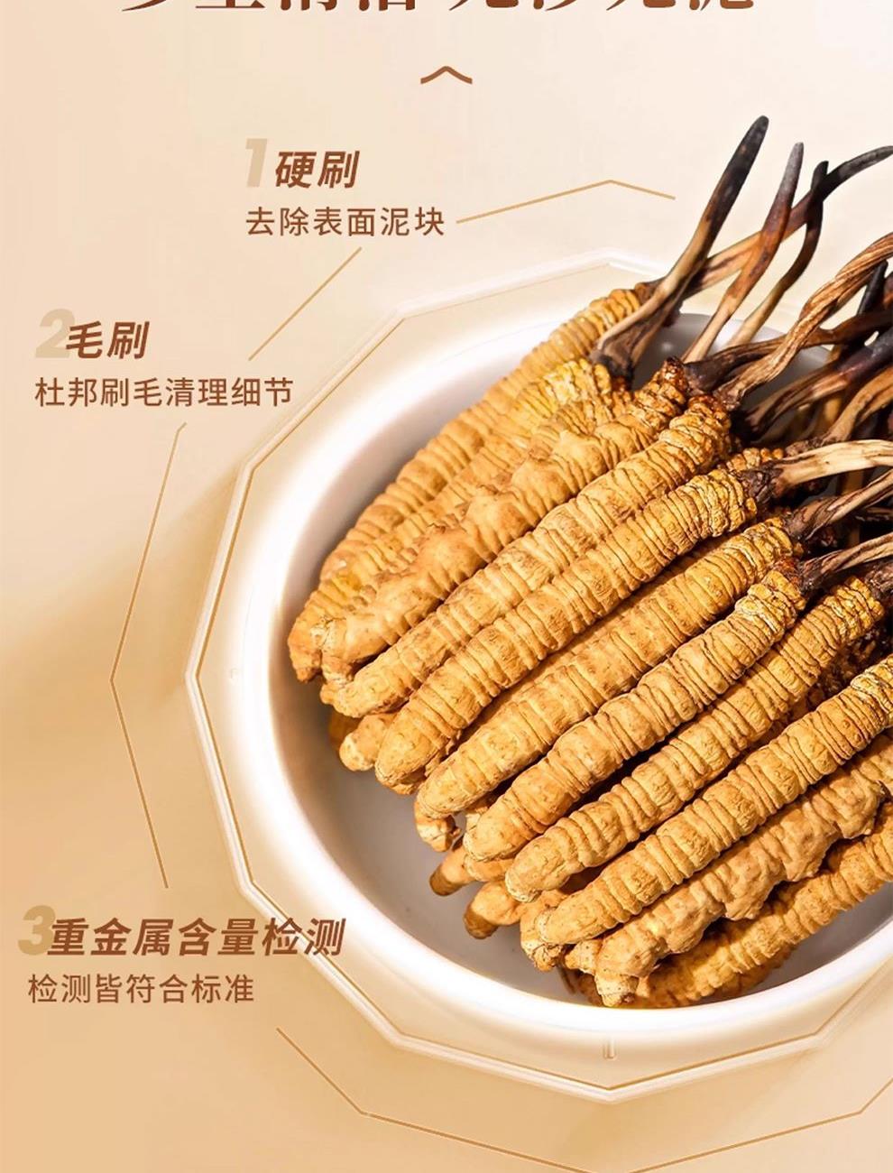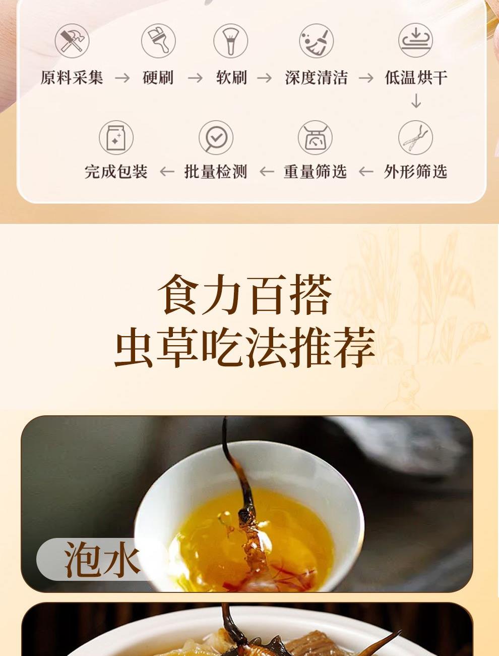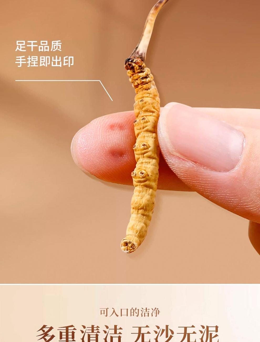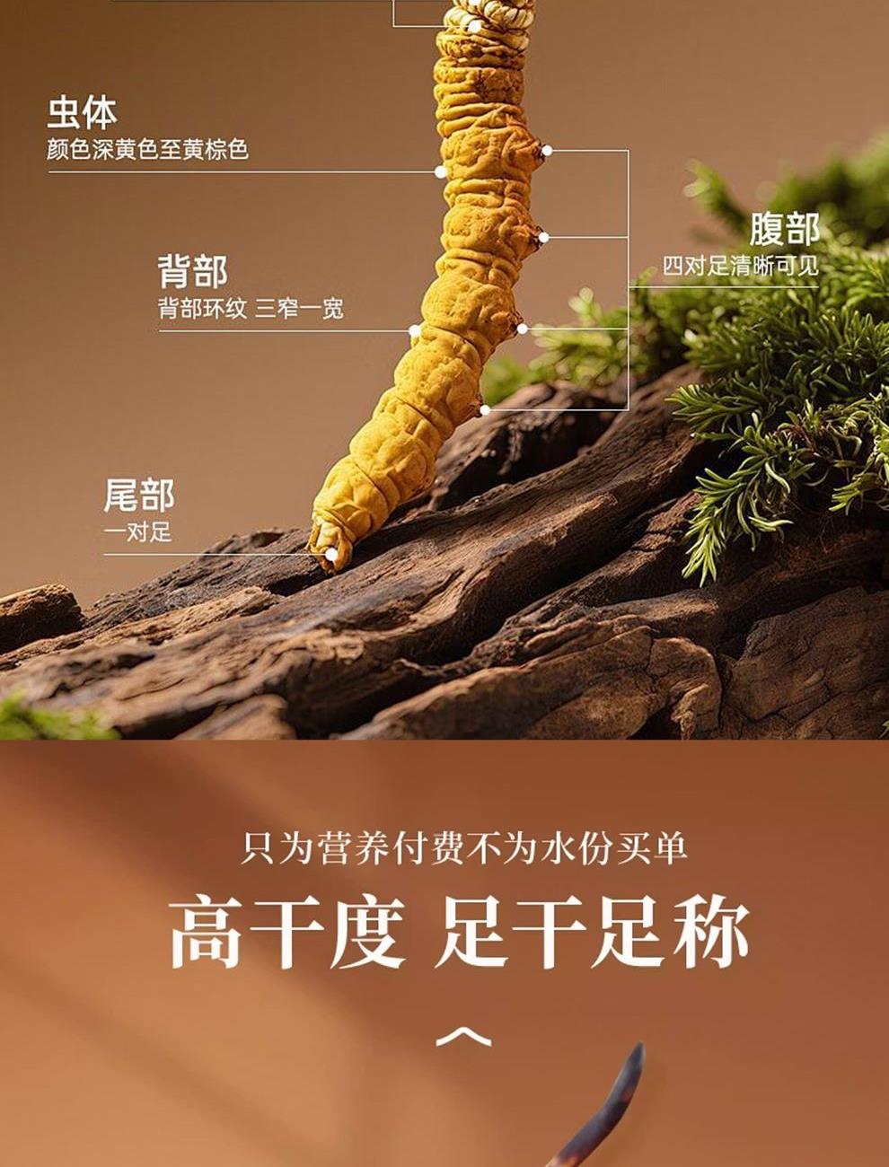 规格:10克(约42支) 卖点: 西藏是冬虫夏草的重要产区,那里的高海拔环境,如雪山、草地,昼夜温差大,紫外线强烈。这种独特的生态环境造就了冬虫夏草的高品质,它生长在这样严酷的条件下,积累了丰富的营养成分。