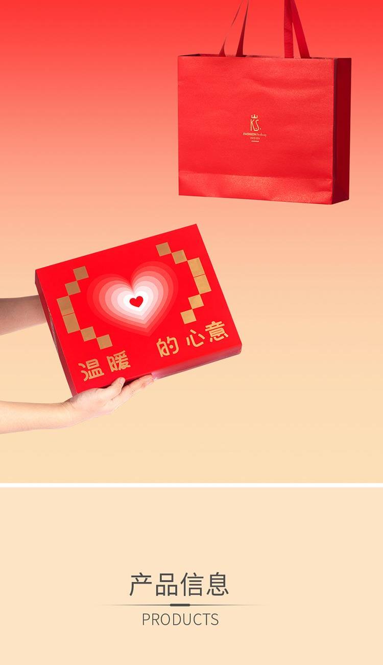 在传统中玩出“心”意的红金配色礼盒,搭配撕拉式开口设计,更具有礼物的仪式感。心意礼盒是新年赠礼、员工福利奖品、开业庆典的实力候选人。 礼盒包含双面绒围巾1条;304不锈钢保温杯1个。 礼盒、礼袋、内容物件上均可实现中小批量成品订制,全套订制方案输出,为企业宣传添砖助力。 以下代发价不含偏远地区:黑龙江、吉林、内蒙古、青海、云南、宁夏、海南、贵州、甘肃、新疆,(西藏地区按官网核价)