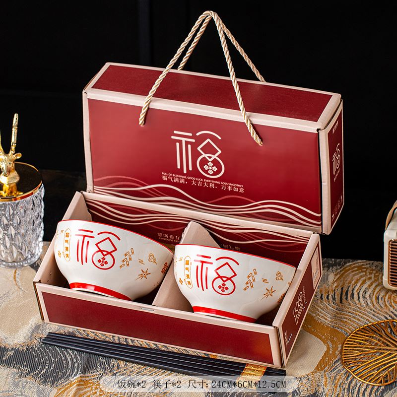 2碗套装:规格:25*6*12.5cm 外箱尺寸:52*33*64cm27kg 产品特点: 表面透明釉质保护层,可直接与食物接触。不含铅镉元素,安心享受美食滋味! 餐具整理厚实防烫,久经耐用,釉面光滑,清洗方便! 餐具包装美观大方,贴心手提设计,送礼大气又档次