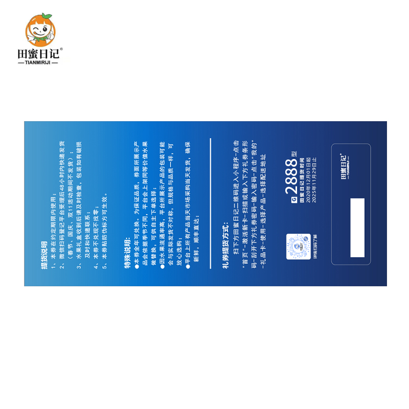 田蜜日记水果提货券2888型