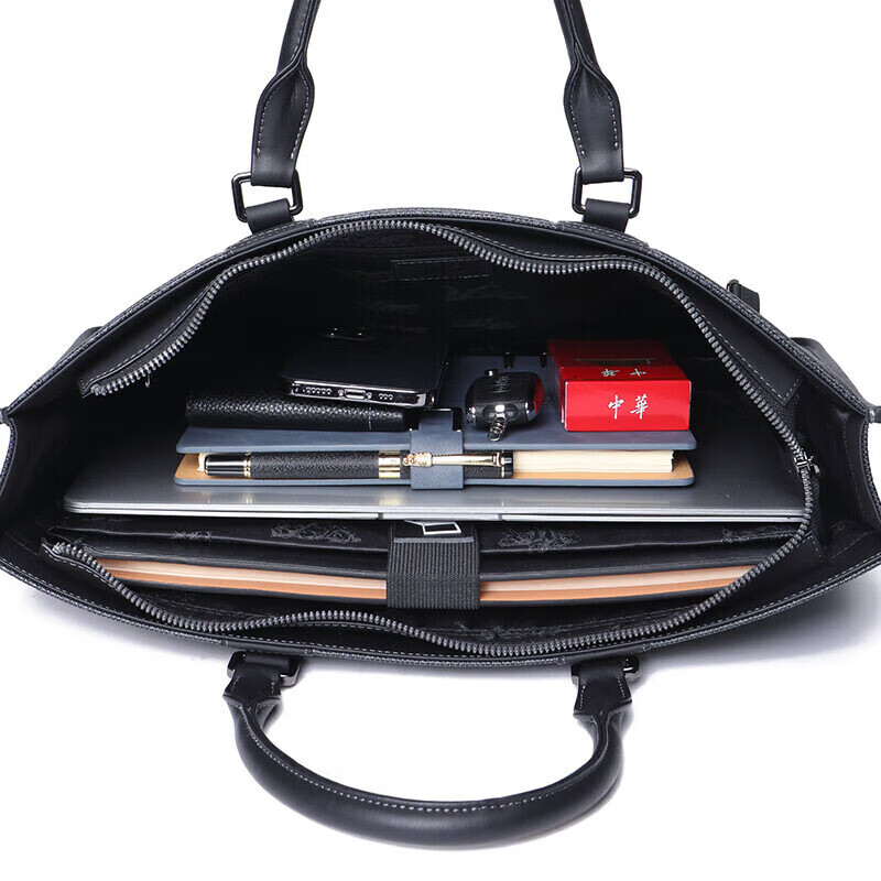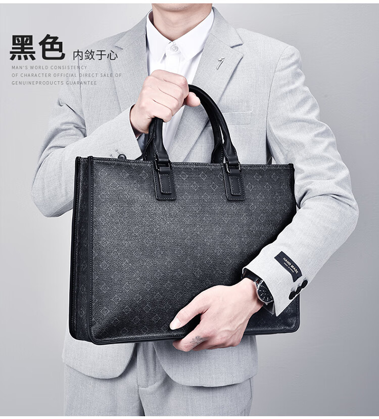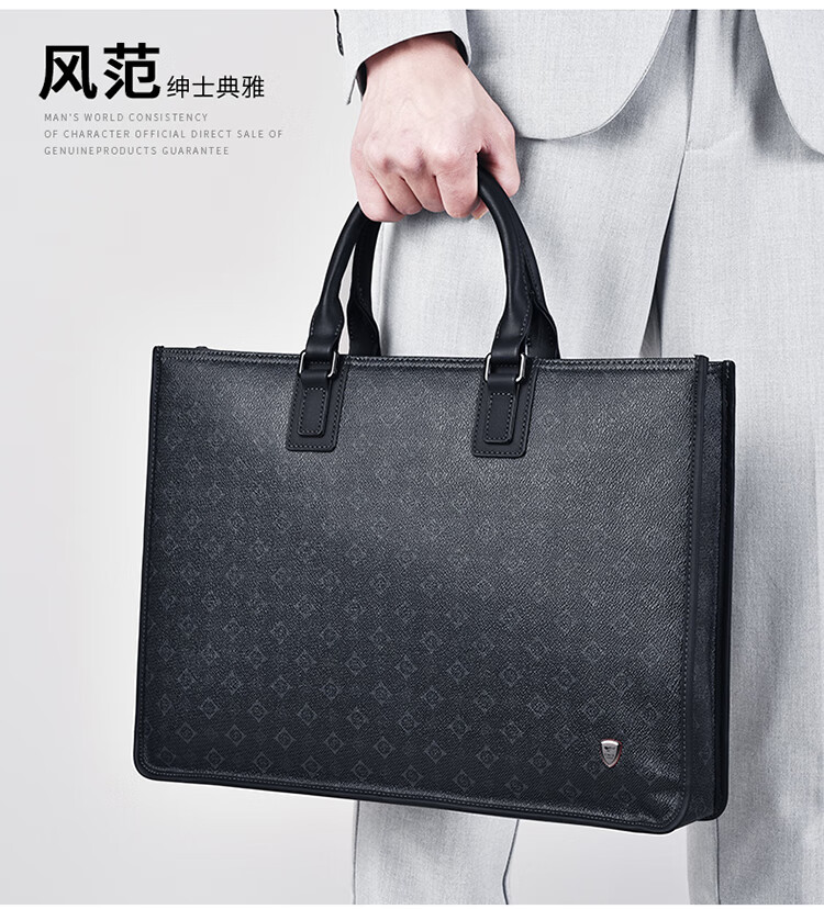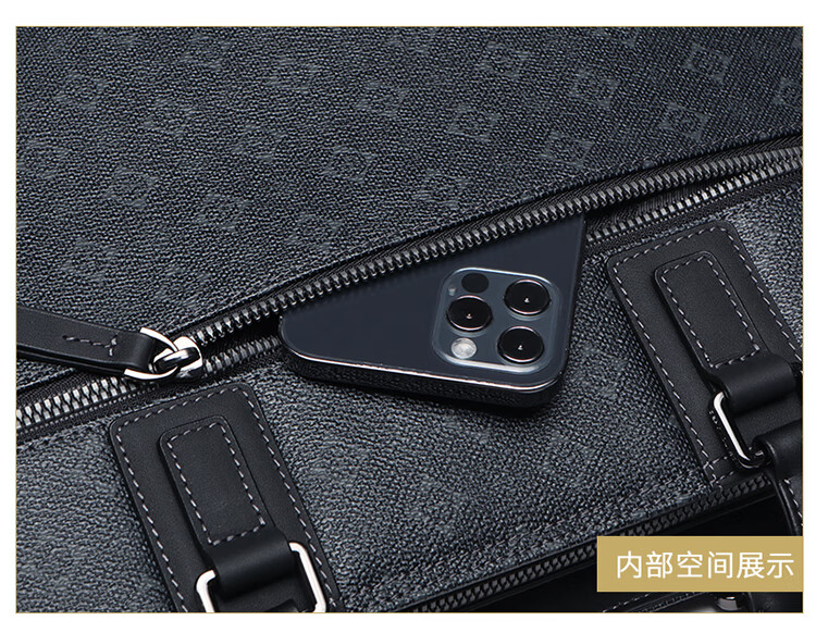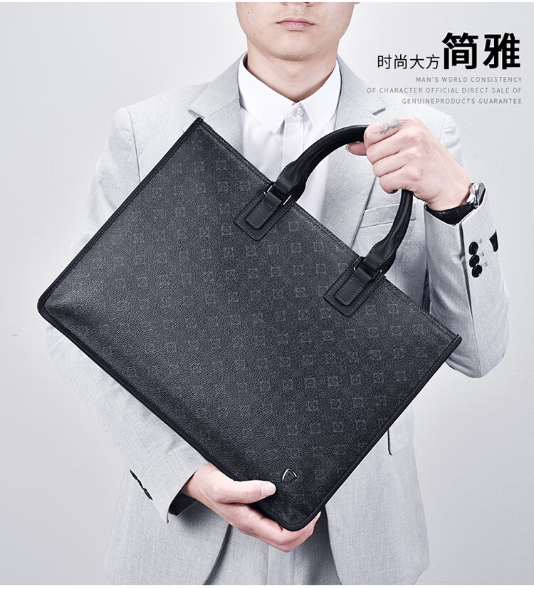类别:公文包 材质:PVC(聚氯乙烯) 闭合方式:拉链 规格:400x90x295mm 容纳电脑尺寸:15.1-16英寸 风格:通勤风 商务风 时尚简约的轮廓外形,实用的内部大容量,潮流印花 根据人体工厂学设计,手感舒适,软硬合适,合理内部结构,物品摆放条理清晰,重要文件安心放 手提与斜跨两种携带模式,满足不同场景出行需求