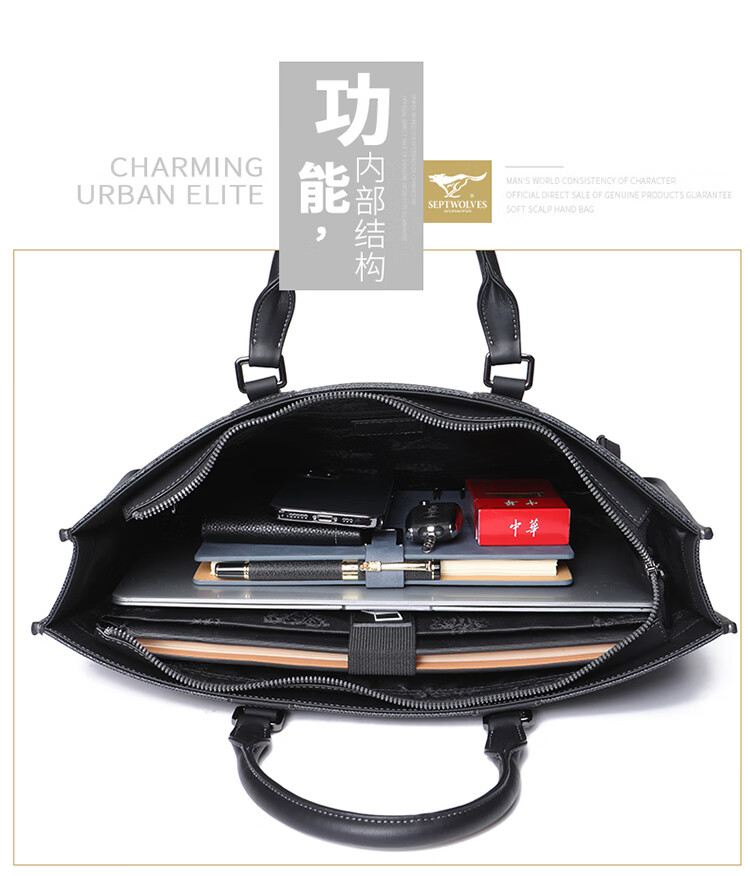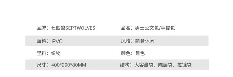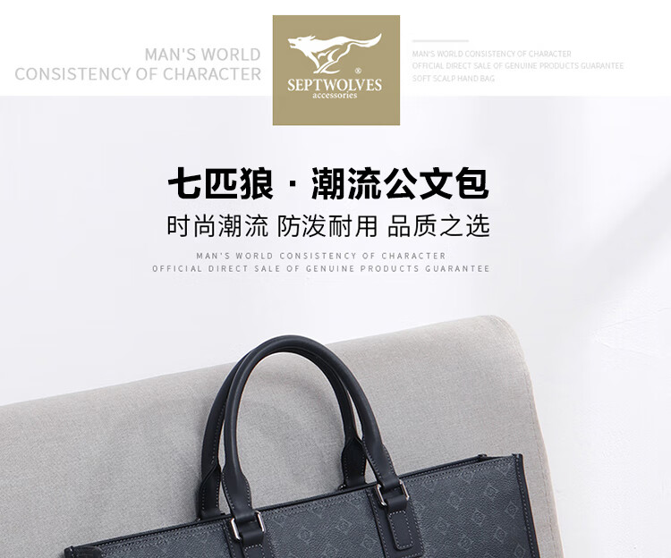 七匹狼男士通勤商务大容量公文包电脑包PD114660-6