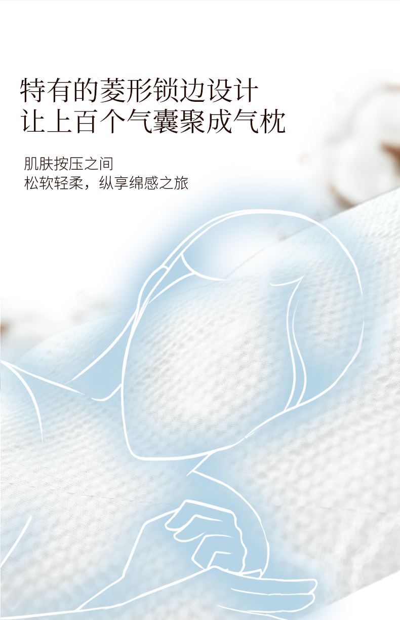 打造细腻菱形压花,让肌肤感受到柔柔的气息;