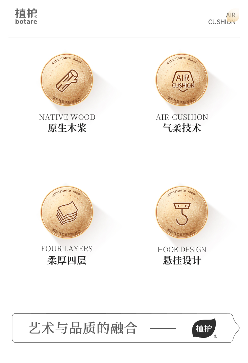 采用特有的对向多层结构,自然形成轻薄的气垫层,亲肤瞬间;