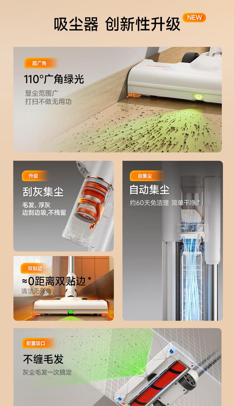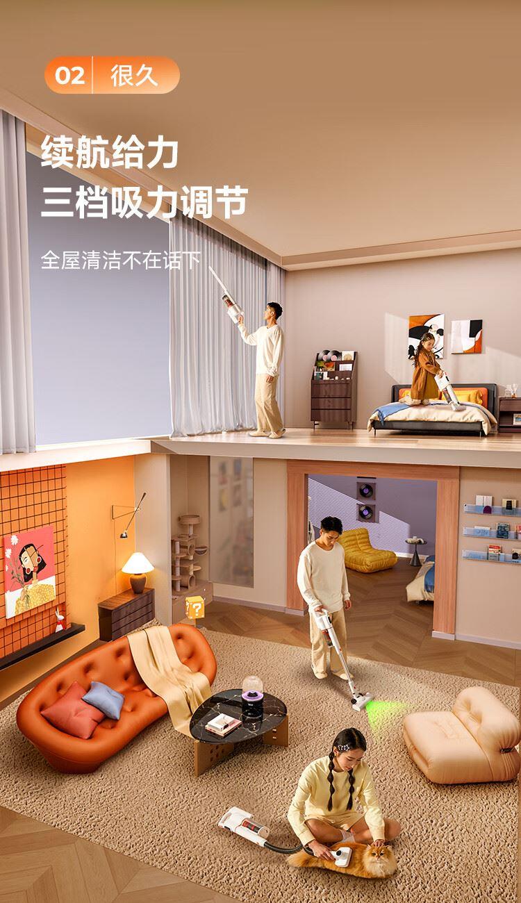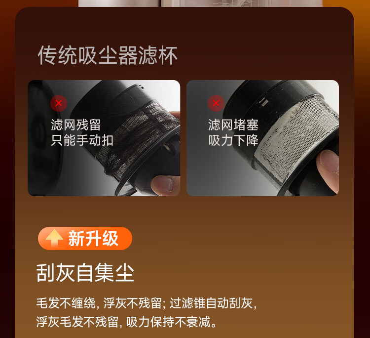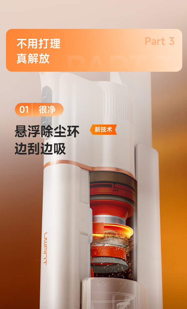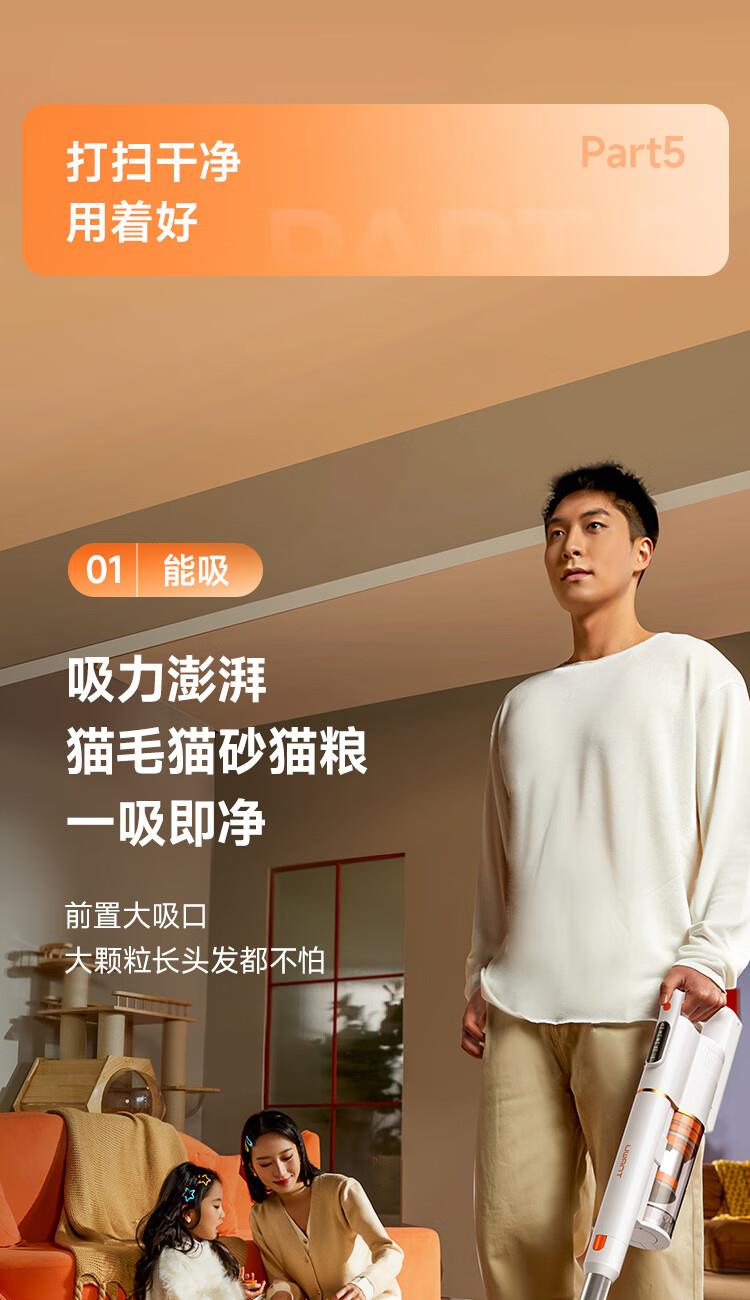 产品参数: 主电机吸入功率:170AW* 电池容量:7节共2000mAh(串联) 档位调节:3档(标准/强力/超强) 尘杯类型:单杯 屏幕显示:LED 尘杯尘袋容量:0.4L1.8L* 产品卖点: PM2.5轻松拿捏,更能过滤掉约99%1微米以下的细菌、尘螨、真菌孢子等过敏原,呼吸更健康,鼻炎也不怕。