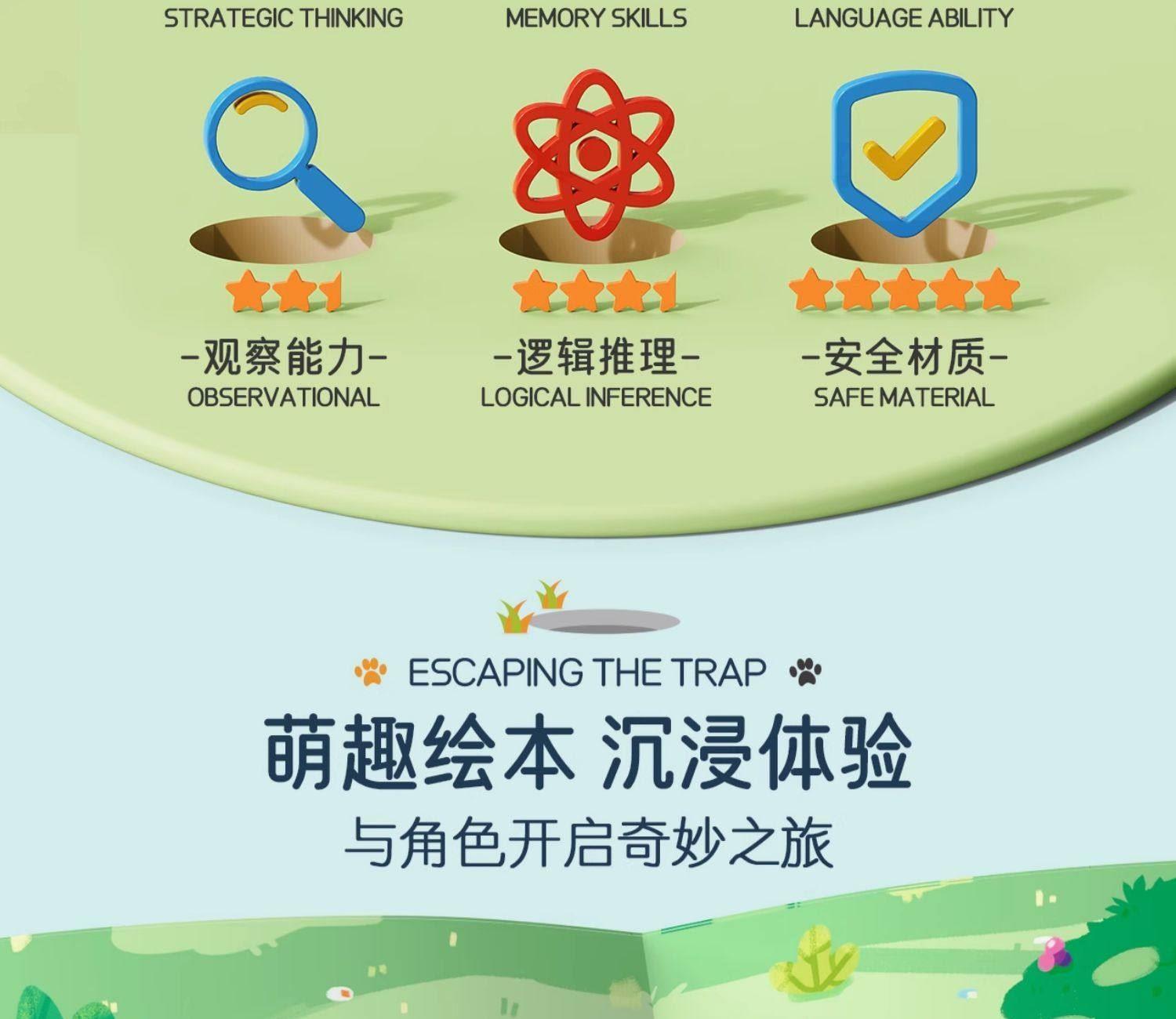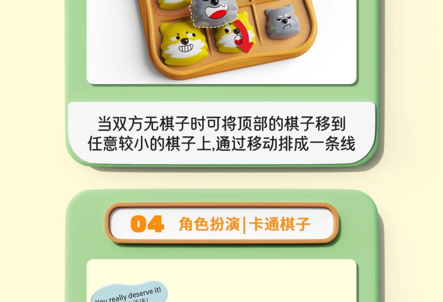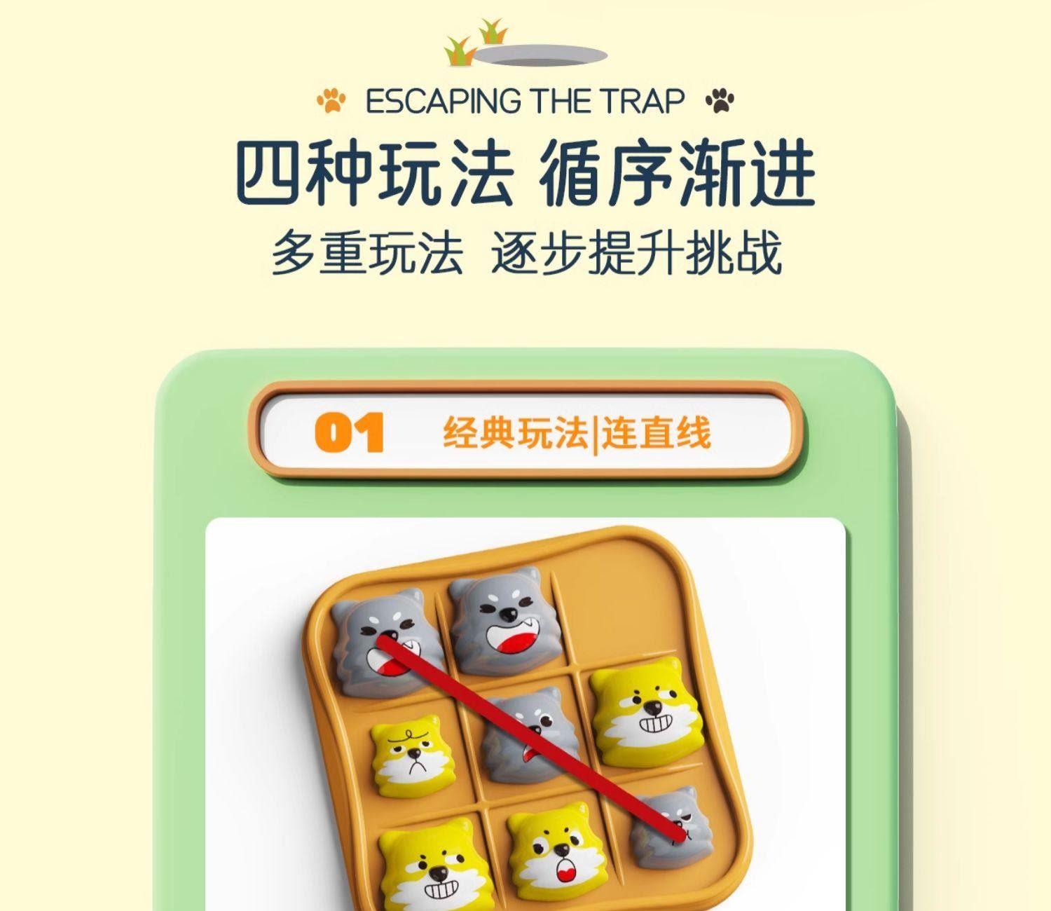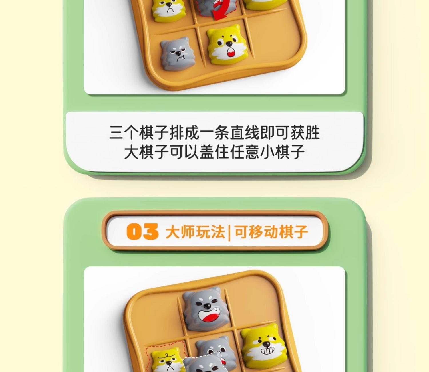 适用年龄:3+ 包装尺寸 (cm):17*5*17 产品尺寸 (cm):17*5*17 产品材质: 塑胶 包装方式: 彩盒 外箱尺寸 (cm):55*37*55 净重(kg):10.5 毛重(kg):12.1 箱量: 60 萌趣棋子演剧情,用小黄狗智斗大灰狼的趣味剧情,把传统棋类玩出新鲜感。4 种玩法进阶玩,双人对战嗨享亲子时光。