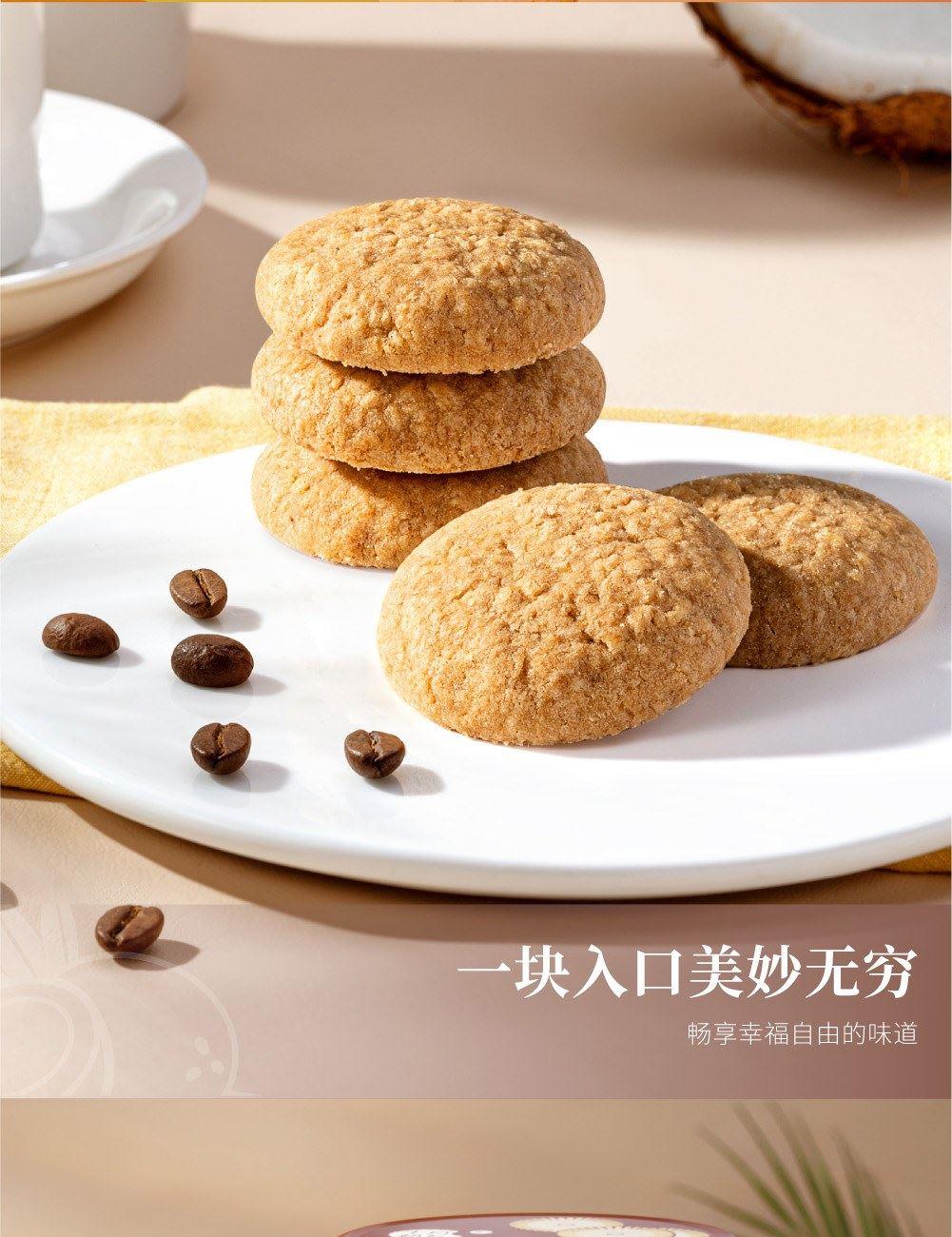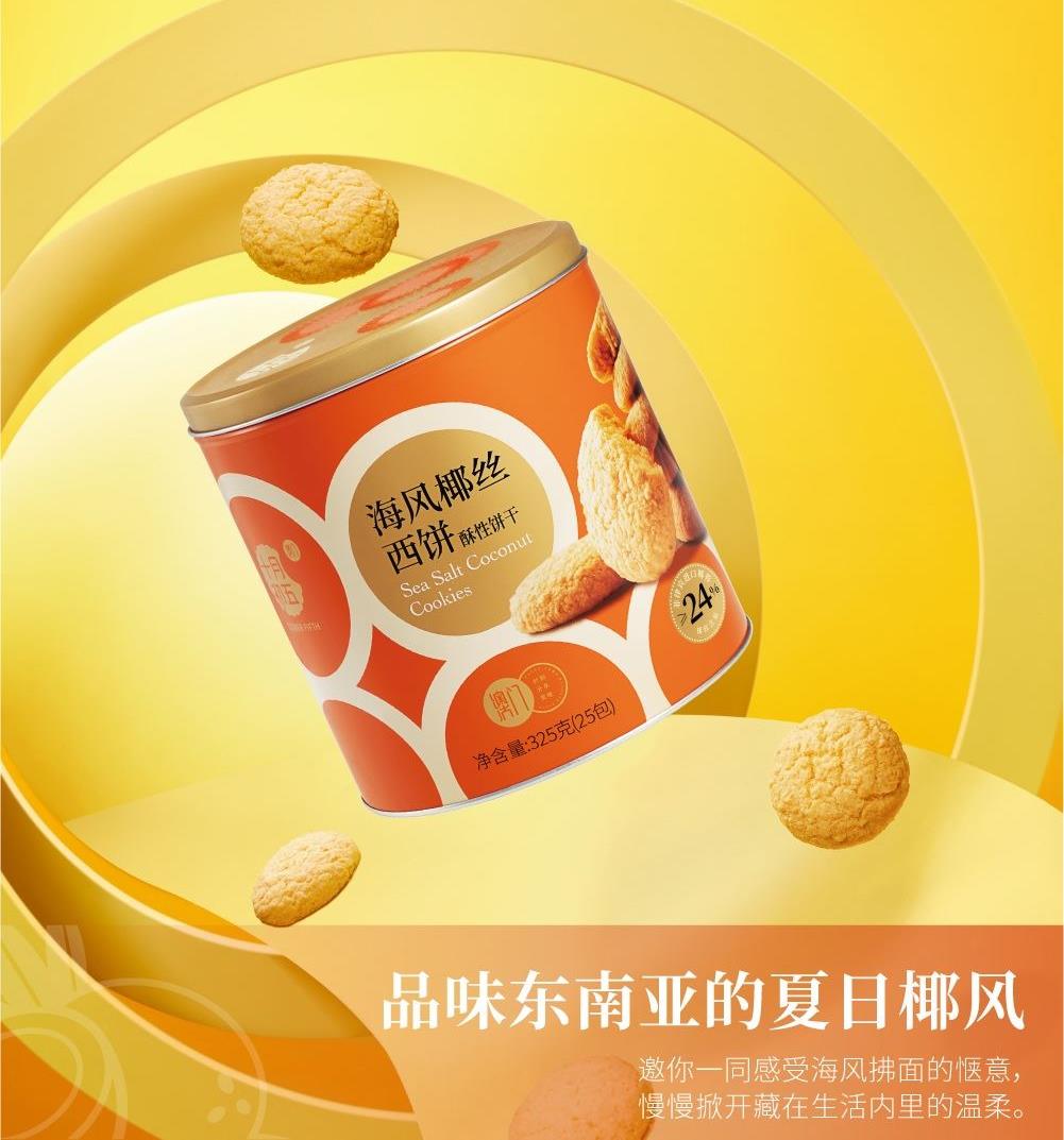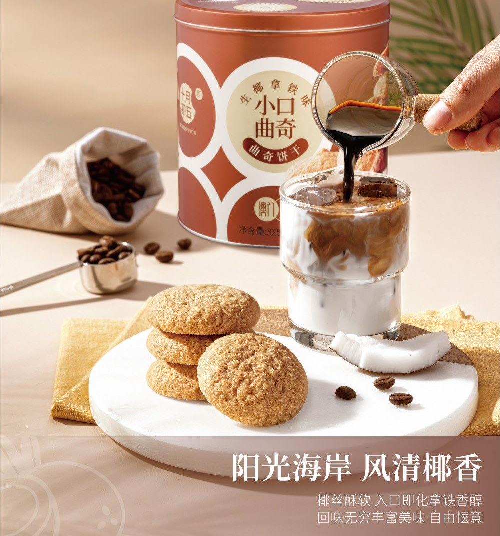 十月初五一举两得礼盒 净含量:650g 325g海风椰丝西饼X1罐 325g小口曲奇(生椰拿铁味)X1罐