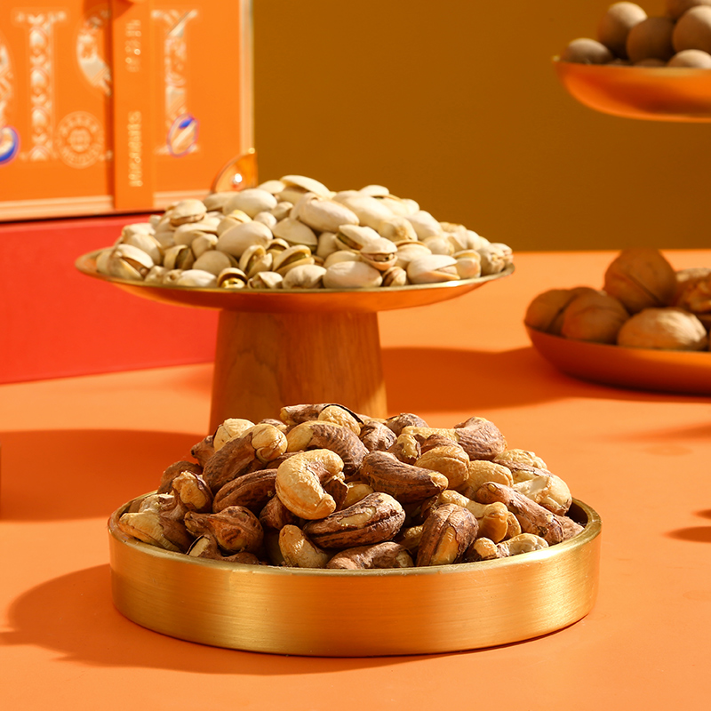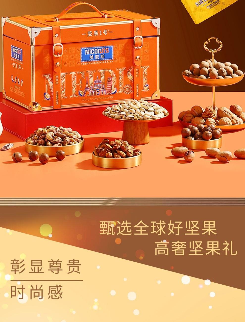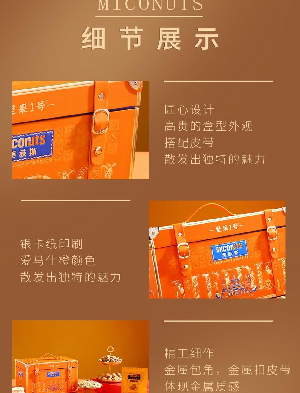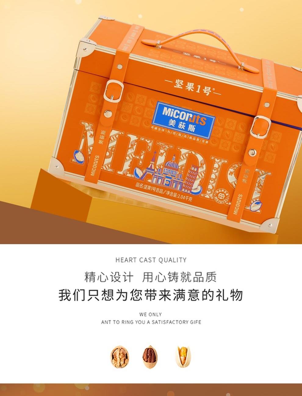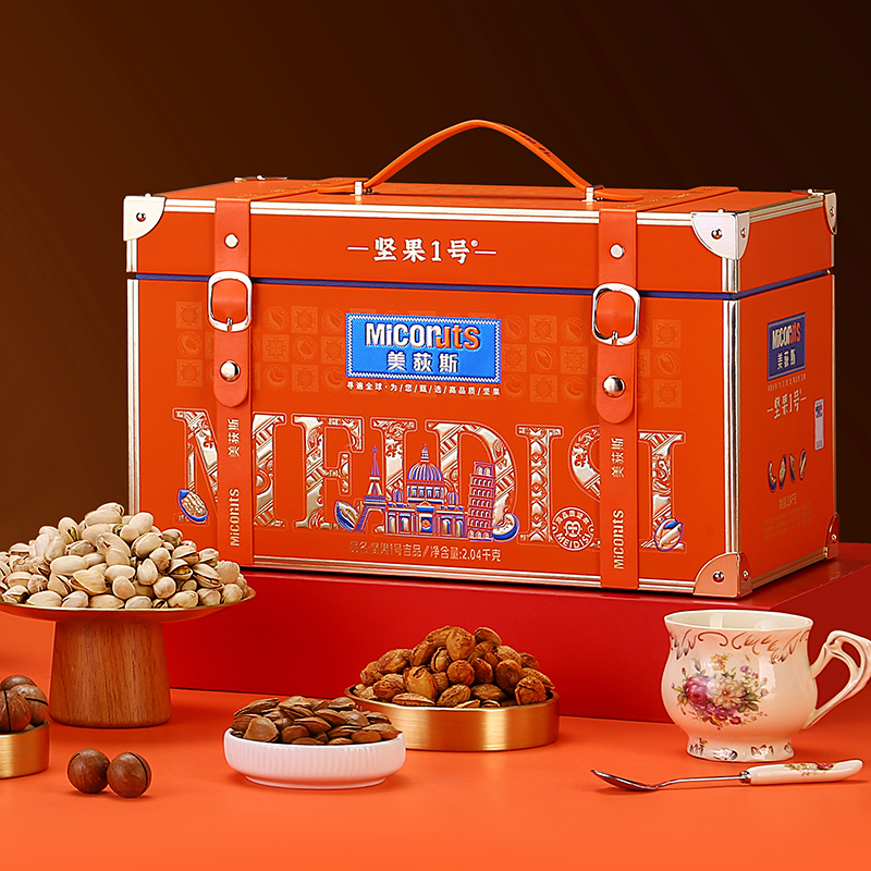 加州原色开心果 100g*1 东南亚紫衣腰果 100g*1 加州NP巴旦木 100g*1 南非珍宝碧根果 100g*1 南非夏威夷果 100g*1 手剥轻熟核桃 100g*1 东南亚芒果干 100g*1 南美提子干 280g*1 波斯枣 480g*1 泰国龙眼干 300g*1 东南亚黄蕉干 280g*1 合计:2040g