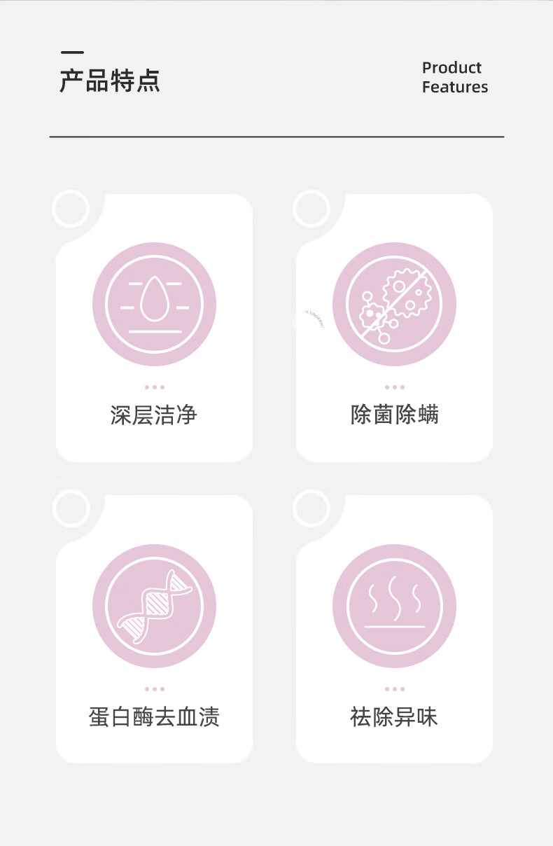 主要成分:表面活性剂、氨基酸表面活性剂、棕榈仁油表面活性剂、助剂、除螨剂、酶剂等
