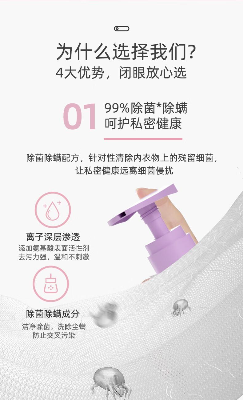 4、率99%,有效除螨,呵护私密健康,配方专门 针对内衣物上的残留细菌