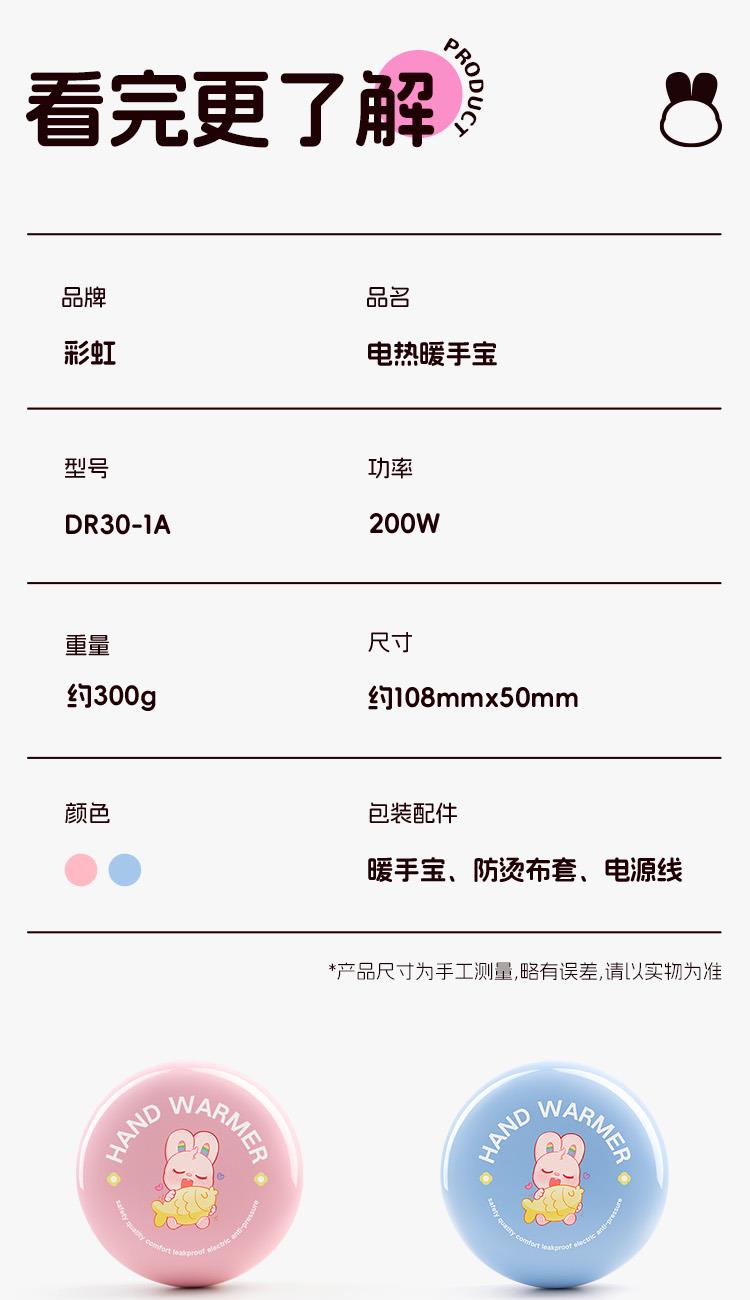 卖点 型号:DR30-1A 功率:200W 功能:内置双温控器,自动控混,自动断电,双面均匀发热,安全可靠, 包装:纸盒 参数 1、采用PC阻燃外壳,坚固耐用手感更佳 2、内置双温控器,自动控混,自动断电,安全可靠 3、采用多层储热材质,6-10分钟快速储放,双面均匀发热持久温暖 4、含防烫布套
