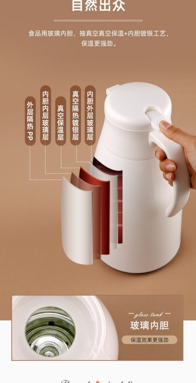 颜色:落樱粉 珍珠白 清空蓝 尺寸:140*173mm 材质:食品级PP塑料外壳 内外胆双层玻璃层真空隔热镀银层 食品用玻璃内胆,抽真空保温内胆镀银工艺,保温更强劲。 包装:单瓦盒