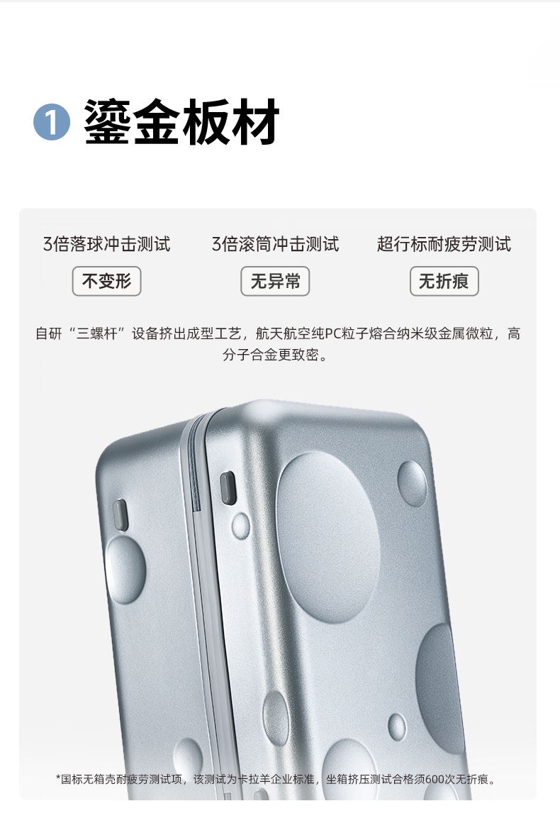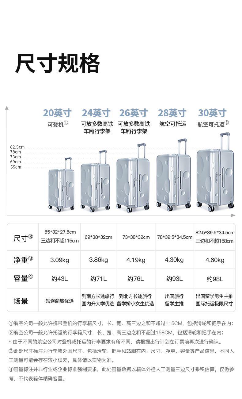 货号: CX8126-28 主体面料:聚碳酸酯(PC);里料:织物 28寸颜色:陨石黑 净重: 4.30kg/93L