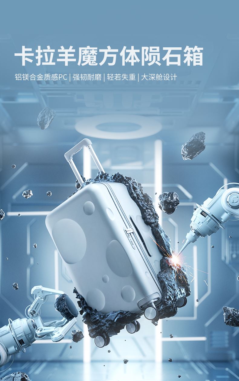 卡拉羊陨石箱魔方体行李箱CX8126-28陨石黑