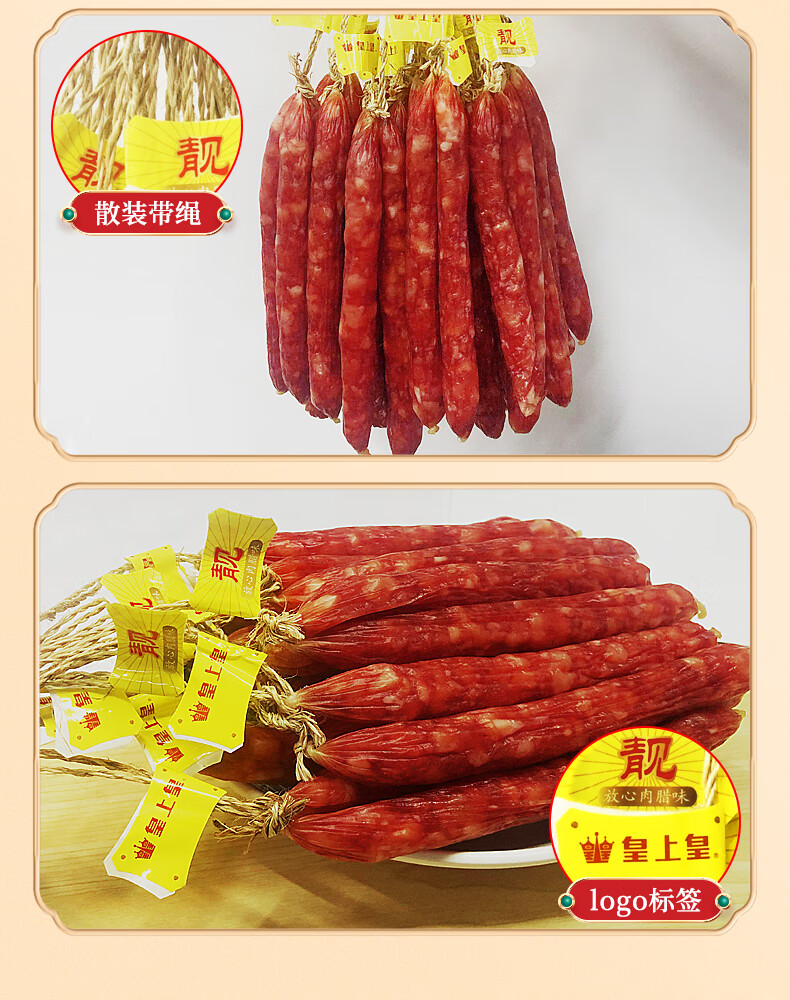 产地:广东 特产品类:广式腊肠 包装形式:袋装 食用方法:烹饪食用 加工工艺:烘干 保质期:360天