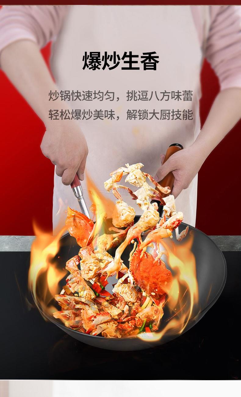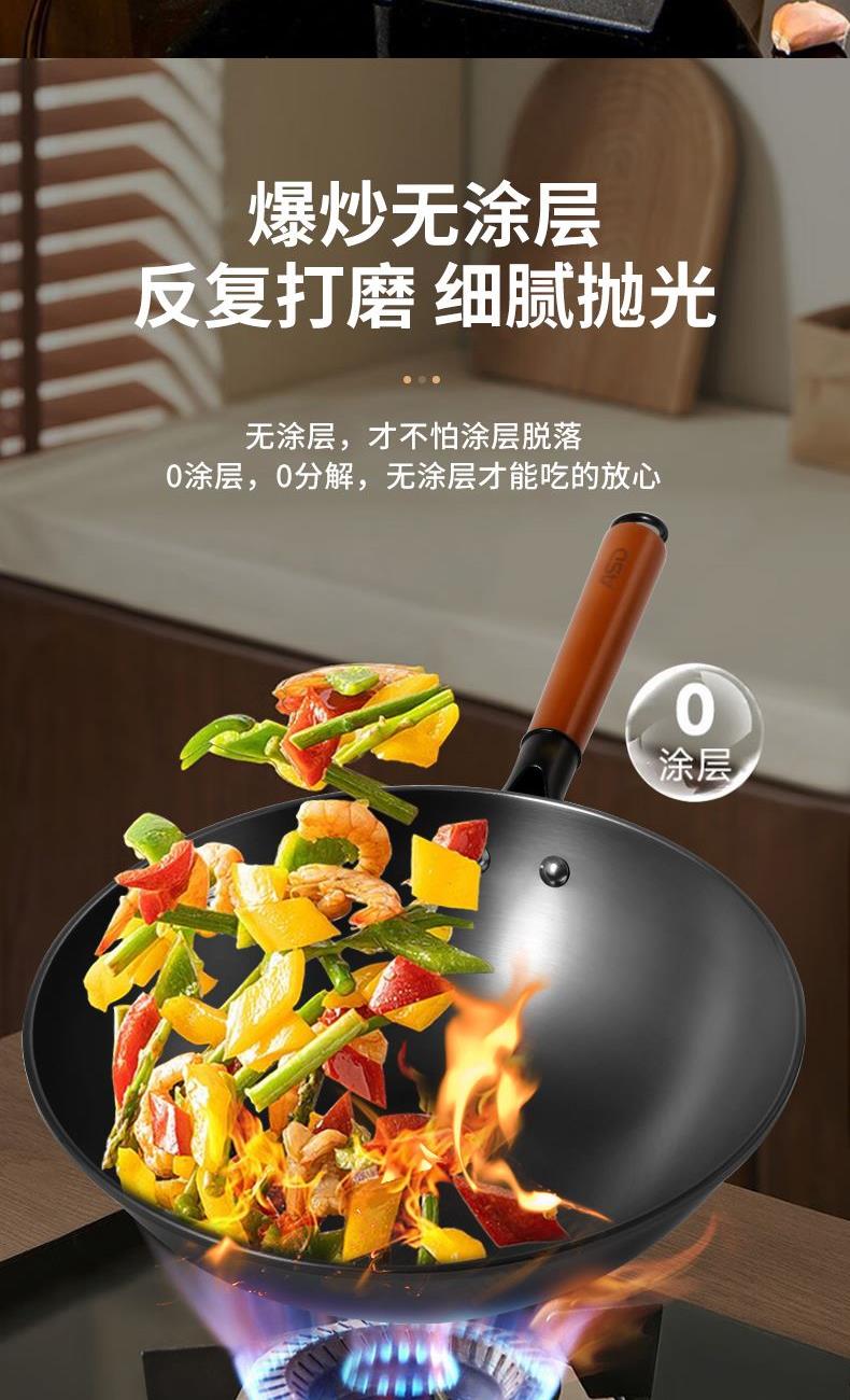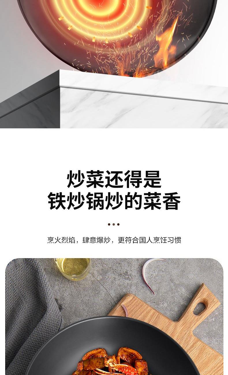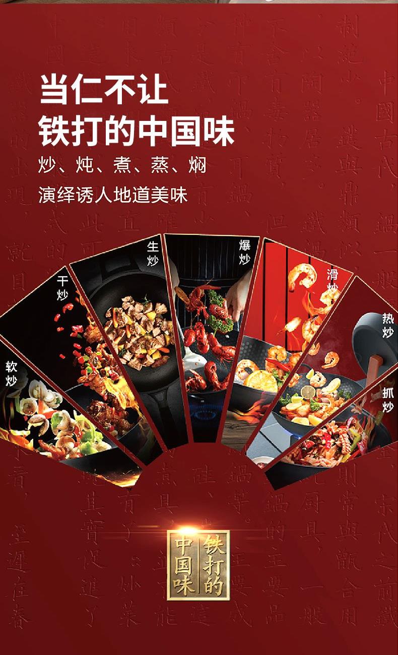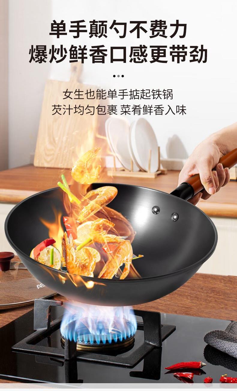 产品型号:CF32H9Z 产品规格:32cm 产品净重:2.29kg 彩盒尺寸:552*370*135 产品材质:精铁 1、可视锅盖,可视玻璃盖,烹饪进程随意掌握。 2、经典大弧度底,大弧度锅底翻炒惬意聚热。 3、实木手柄,可悬挂实木手柄隔热防烫握感舒适。 4、铁锅导热迅速,锅气十足,在烹饪美食的同时保留了食物的新鲜度。 5、无涂层,才不怕涂层脱落0涂层,0分解,无涂层才能吃的放心。