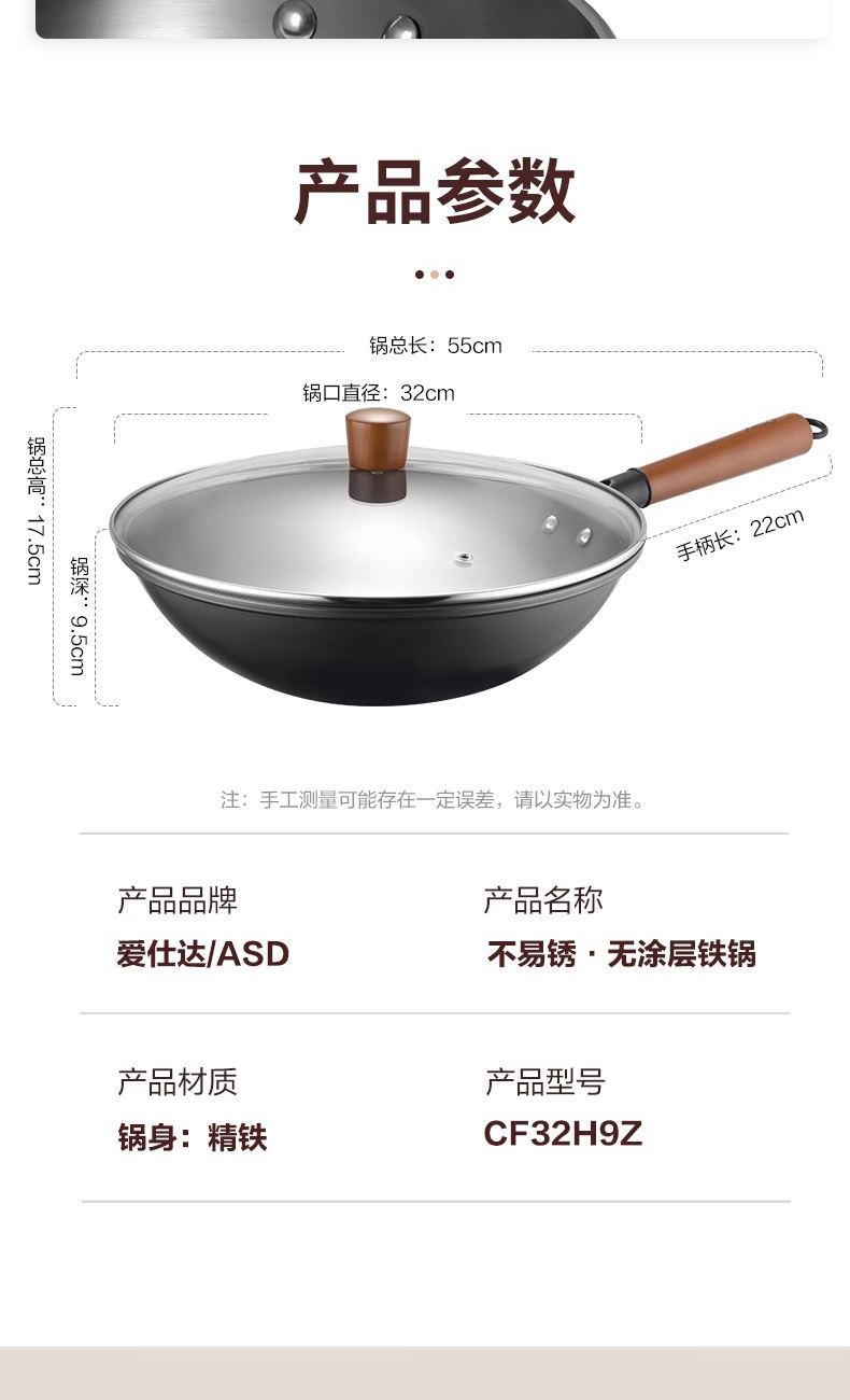 ASD爱仕达不易锈无涂层铁锅CF32H9Z