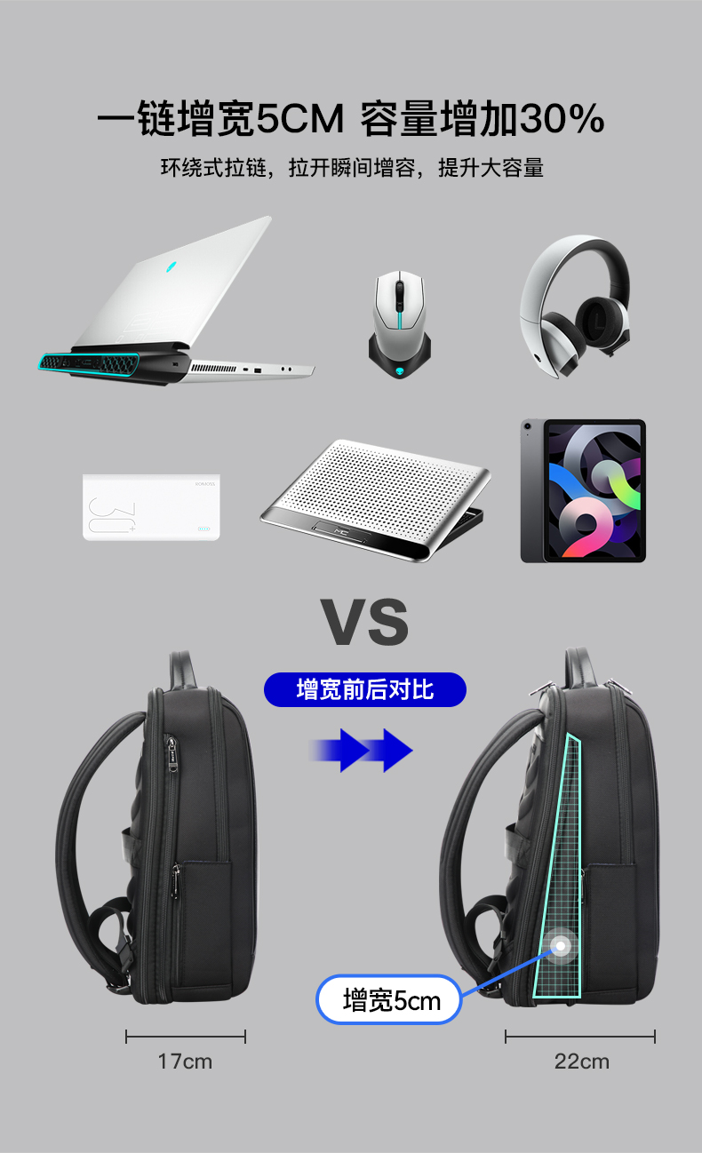 博牌简约商务双肩包可扩容背包AL-751-006631A新
