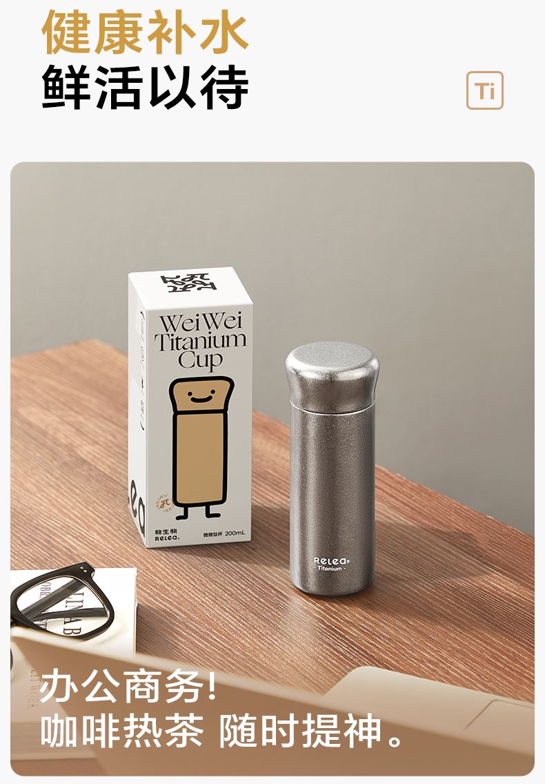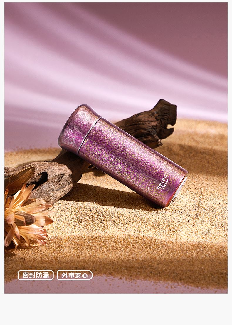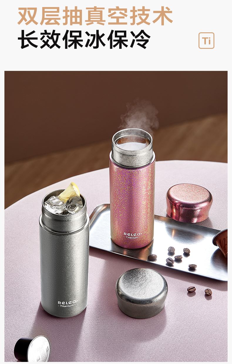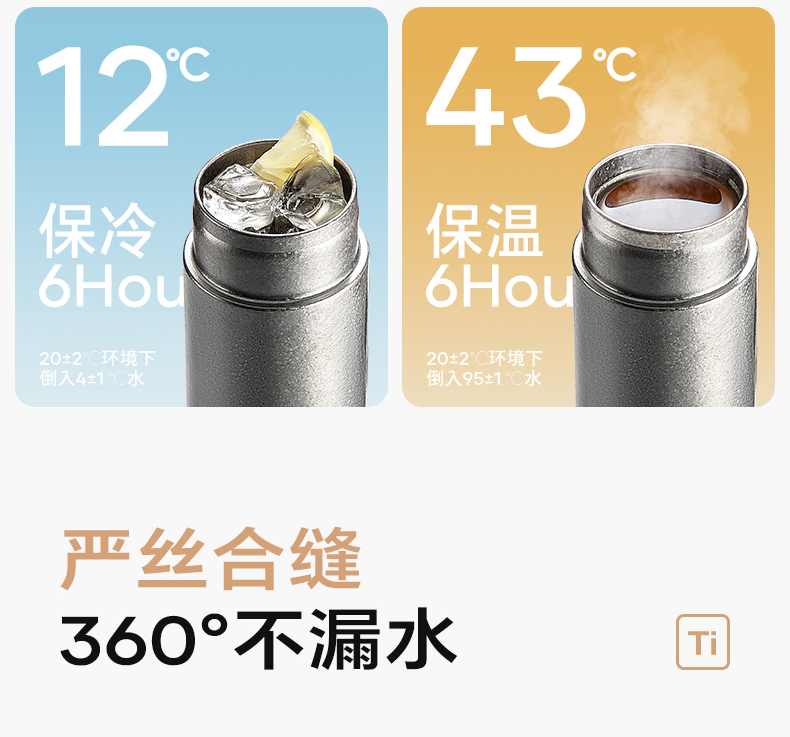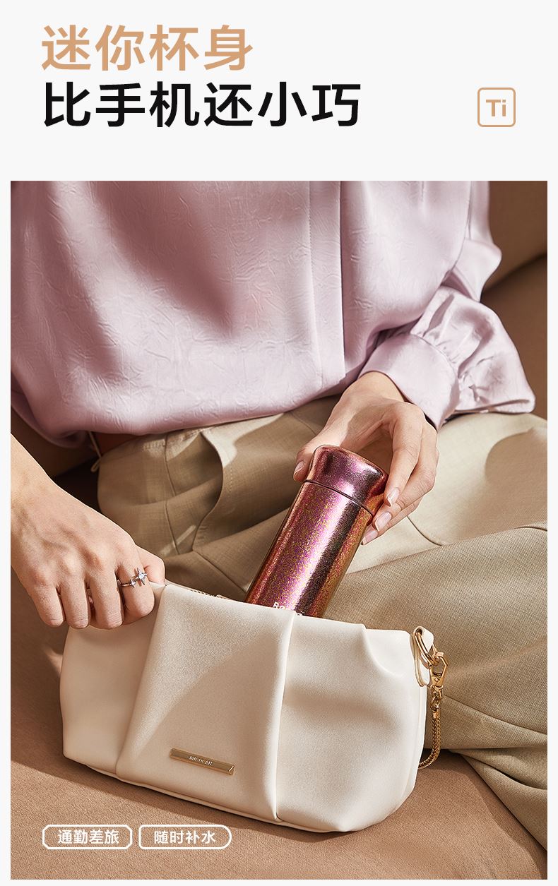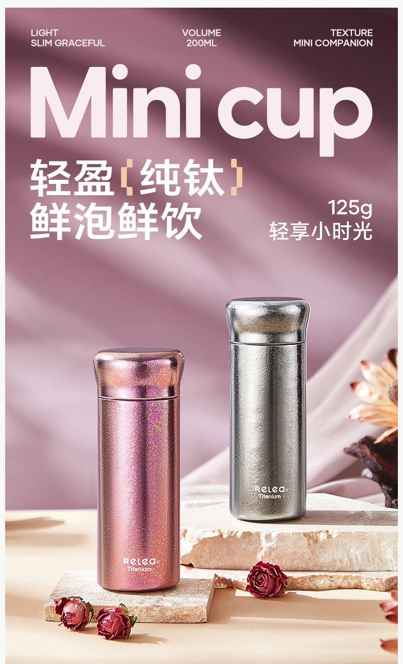 颜色:轻钛粉,初钛银 容量:200ml 材质:杯盖-内胆外壳/纯钛 密封圈/硅橡胶 尺寸:内口径3.6cm/高14.9cm ①内外纯钛 保鲜 ②密封防漏严丝合缝 ③迷你容量随处可装仅重125g
