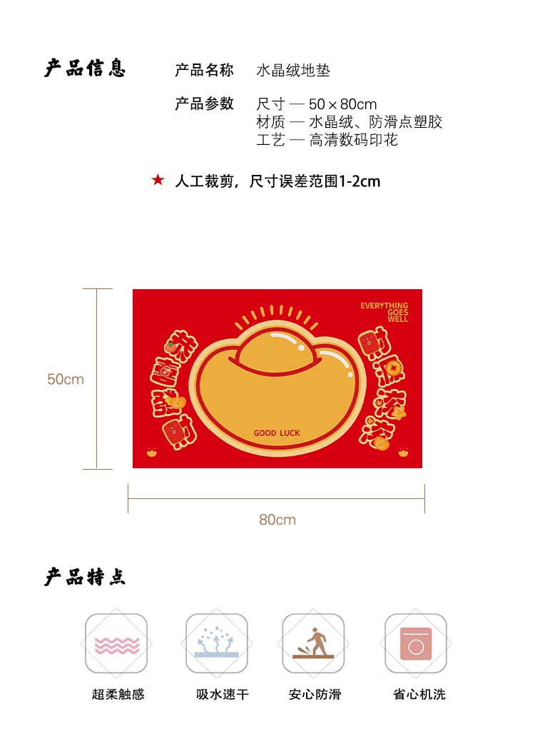 材质:超柔水晶绒面,防滑点塑底背 工艺:高清数码印花 机制锁边 定制:可印logo,可彩印,可整版定制(定制均免费) 起订量:50个 可代发