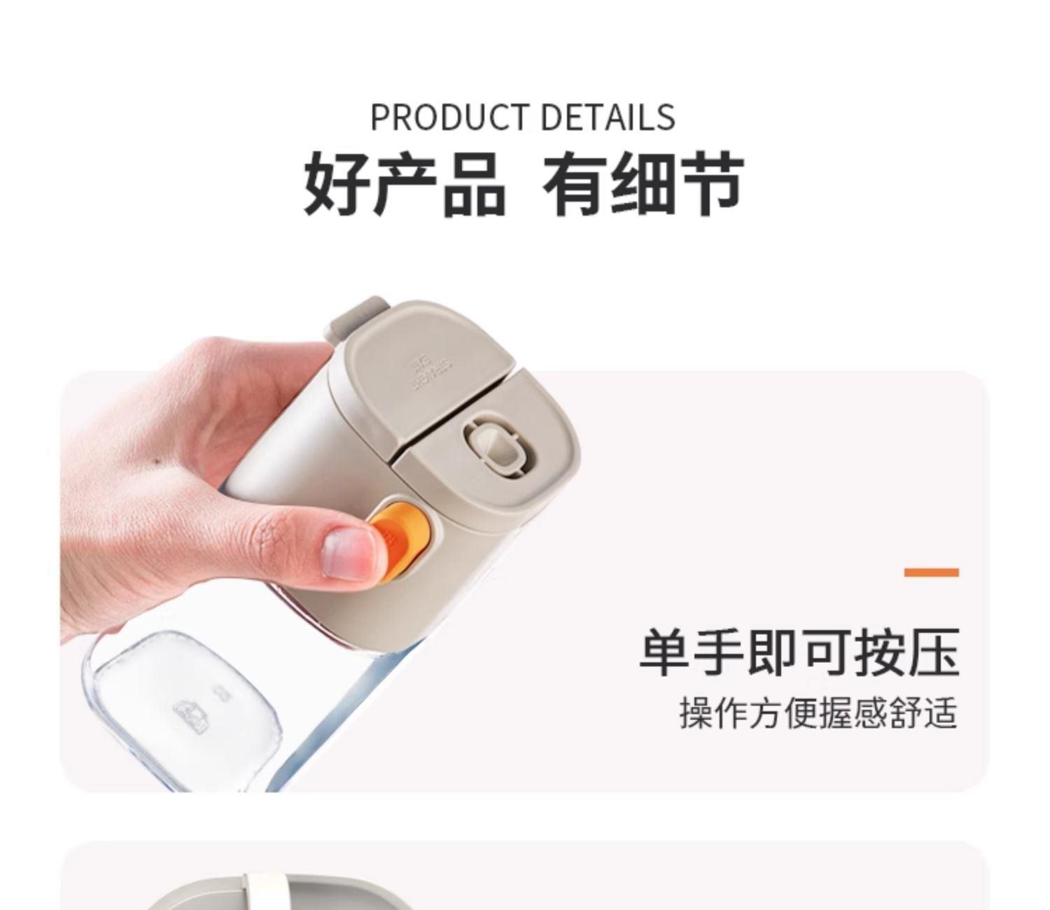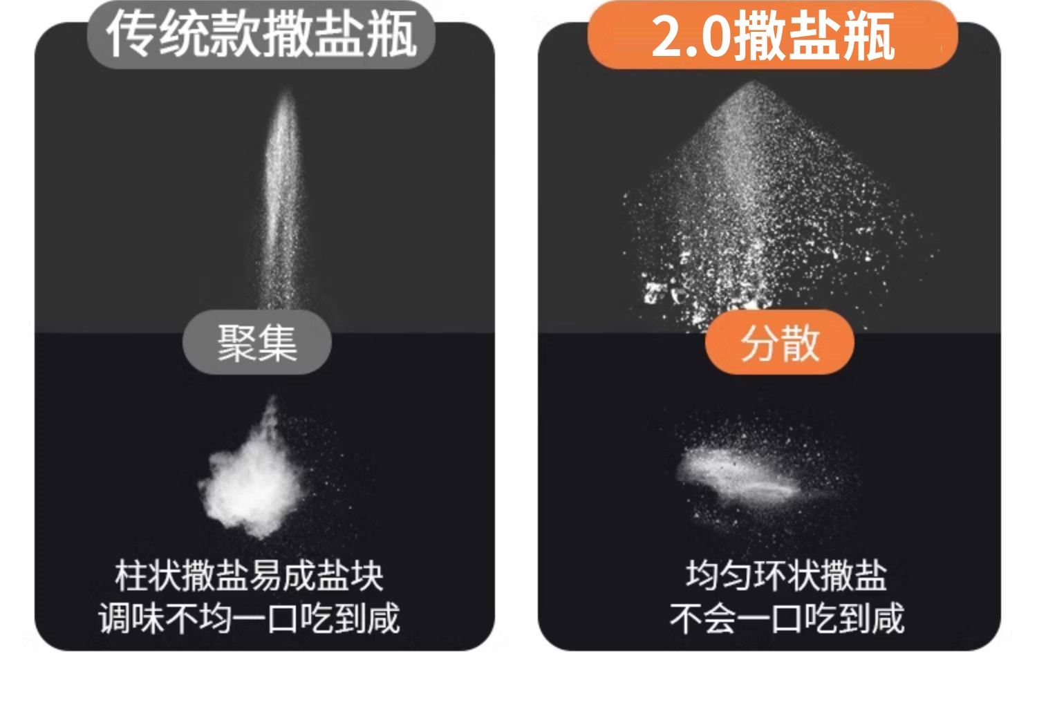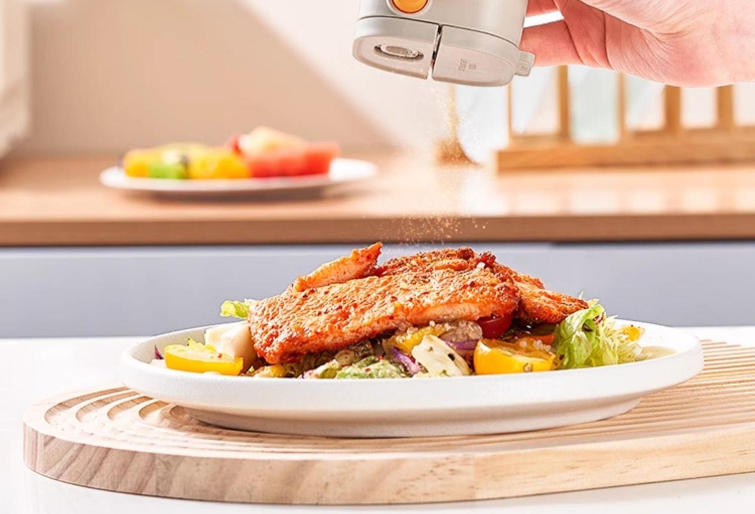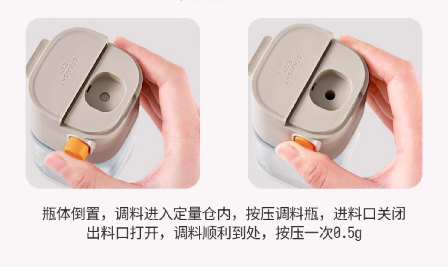 莱昂2.0定量两用调料瓶,单次按压0.5g盐 环形出料撒盐更均匀 斜坡导流设计分散出盐不结团 定量控盐,轻松把控盐量,厨房小白也能轻松掌握双重密封不给潮气可乘之机,导流坡有效阻隔油污潮气,避免卡盐结块 好拆易装 清洁无忧 全身可拆洗设计 易于清洁不藏污 单手即可按压,操作方便握感舒适 一瓶两用,控盐撒料一气呵成。 加厚瓶体耐磨耐用余量可视