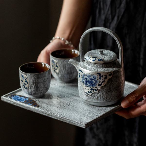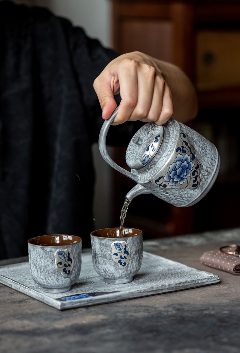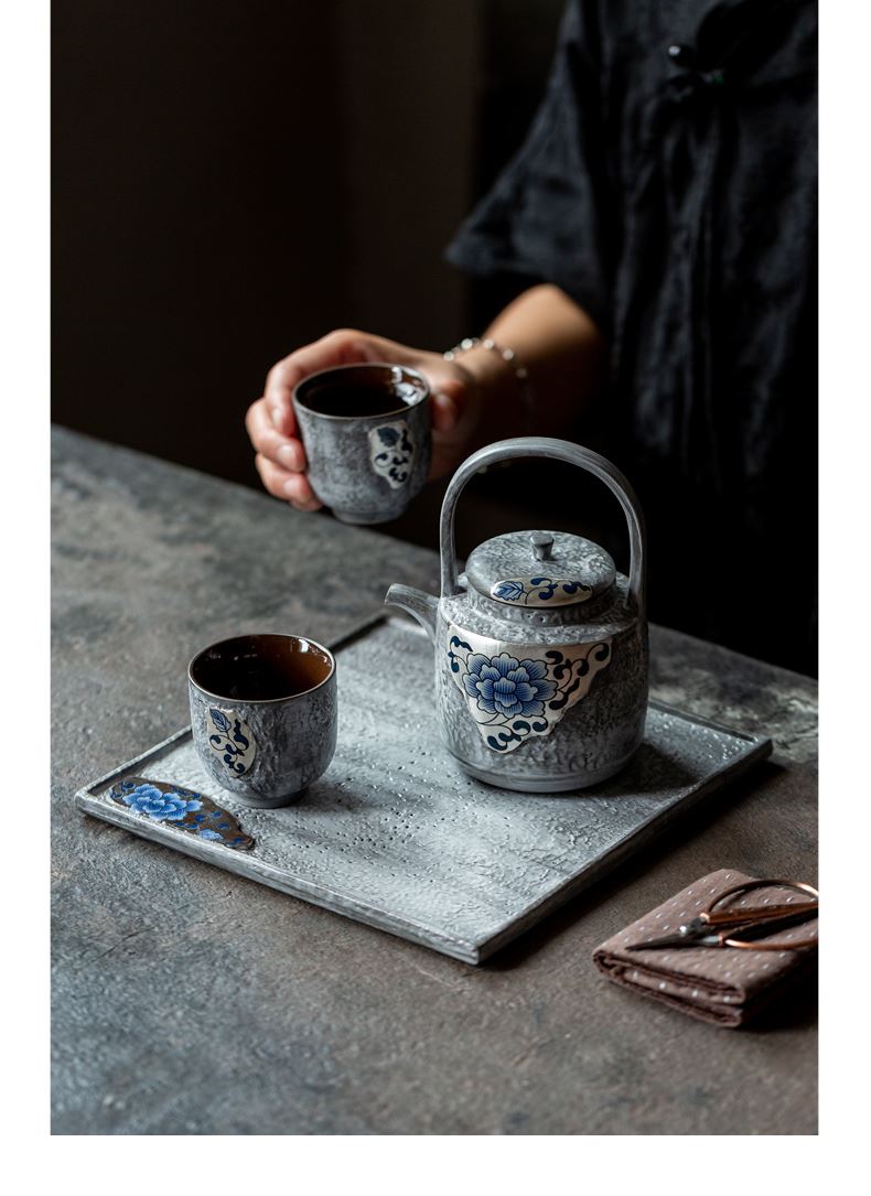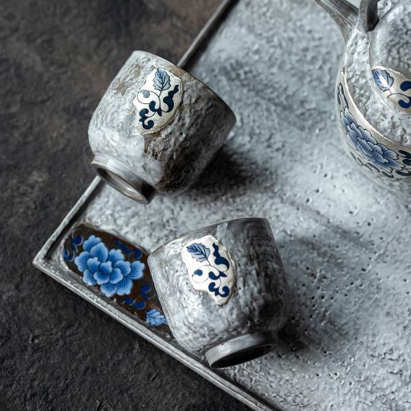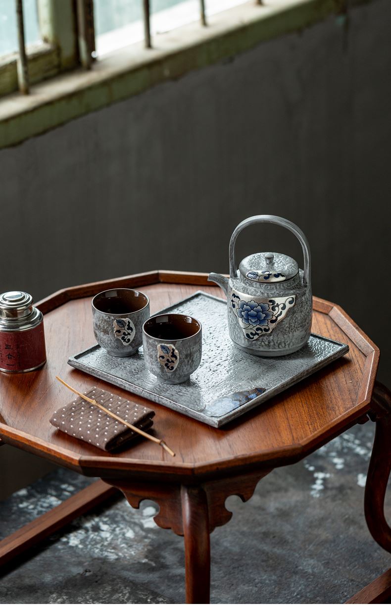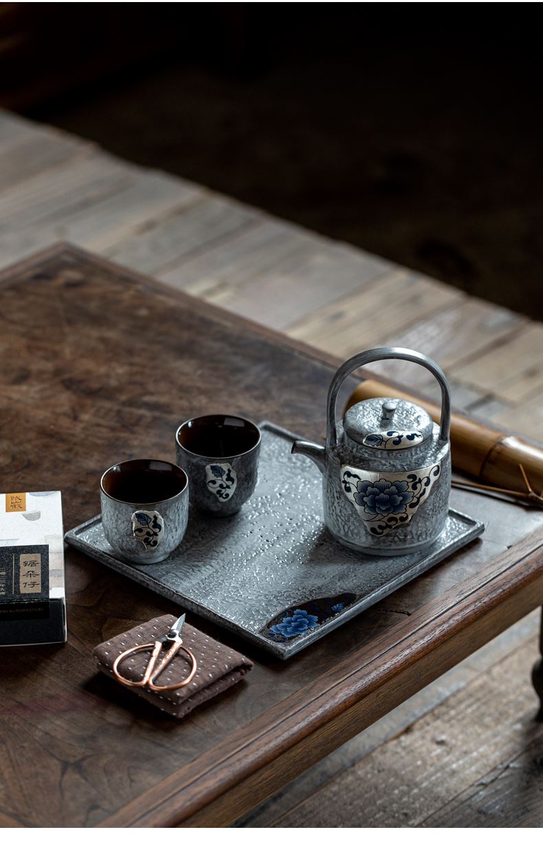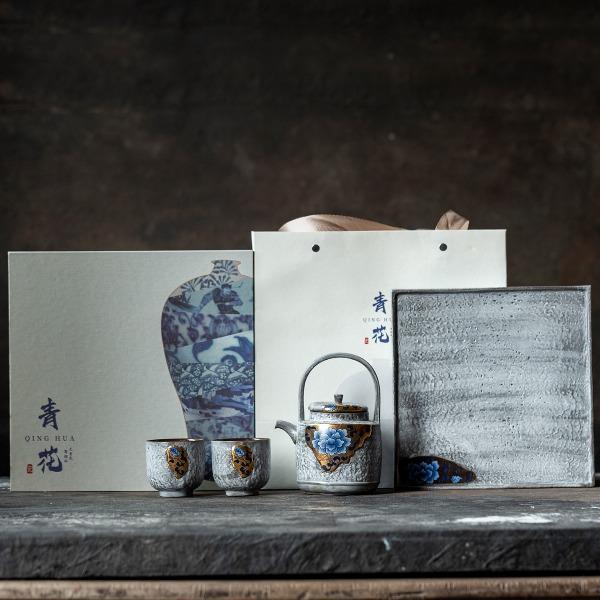 尾桥下窑粉引青花鎏金银提梁壶丰年金善茶具套装茶室会所节日礼品