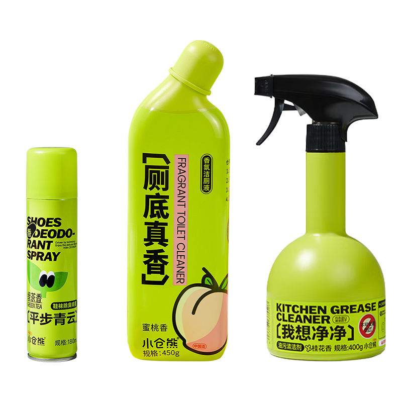 小仓熊香氛洁厕液(蜜桃香)450g 小仓熊鞋用除臭喷雾180ml 小仓熊油污净厨房深层清洁400g 小仓熊除臭鞋球12g 小仓熊冰箱除味蛋-柠檬30g 小仓熊马桶挂篮-(单个装)50g 赠:Sckoes诗寇丝木浆清洗海绵1块 小仓熊甄选礼盒(265*95*270mm)