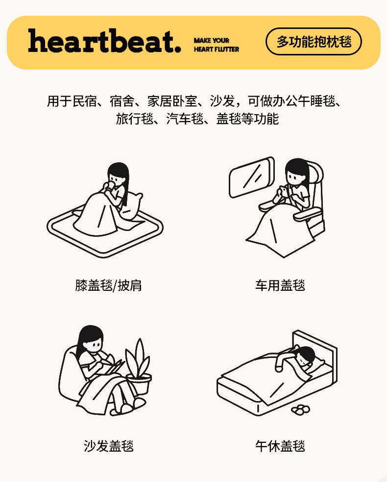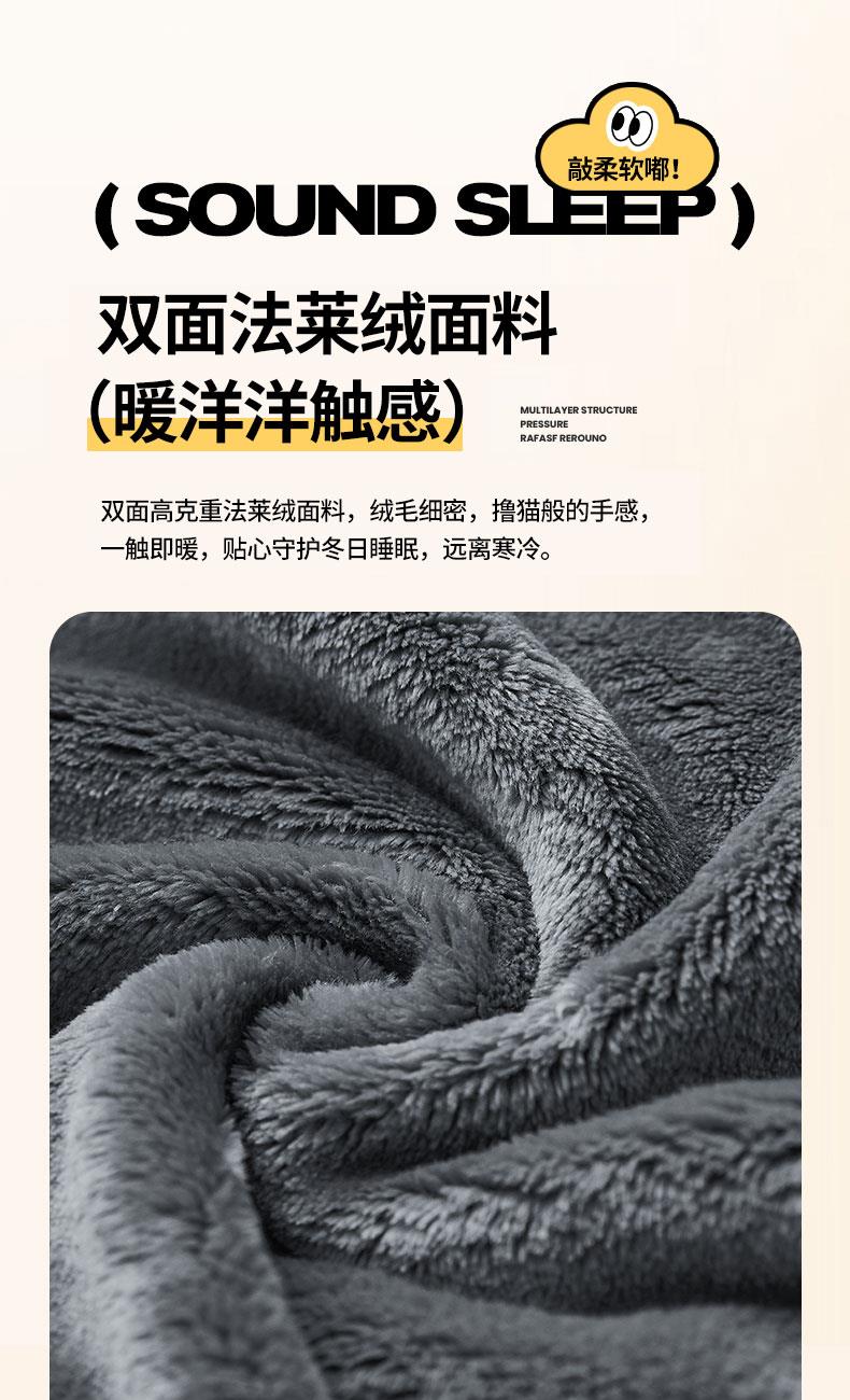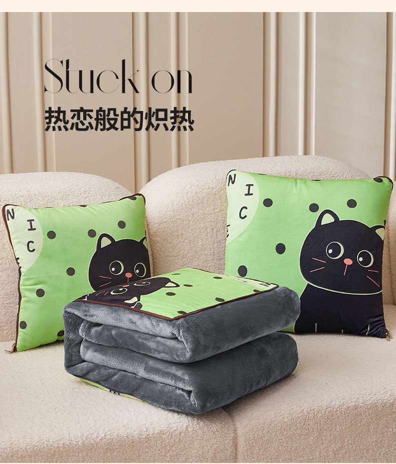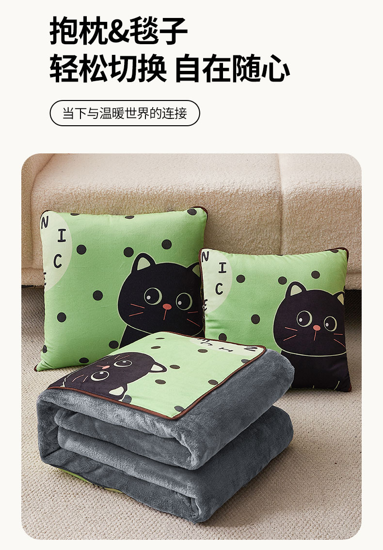 花色:绿色猫咪、LOVE熊、爱心熊猫、暴富、嘟嘟熊、 福气满满、萌狗、趴趴熊、三个朋友、眼镜鸭、竹叶熊猫 规格:折叠37*37cm展开120*160cm 面料:水晶绒+双面法莱绒(聚酯纤维) 双面高克重法莱绒面料,绒毛细密,一触即暖;印花部分水晶绒面料,保暖透气不闷汗。植入导电丝,减少干燥天气带来的静电烦恼;新一代活性印染,色牢度高,不易褪色,不惧机洗水洗;细密卷边工艺,针脚紧密,耐磨耐用;双向拉链设计,顺滑易拉,经久耐用。