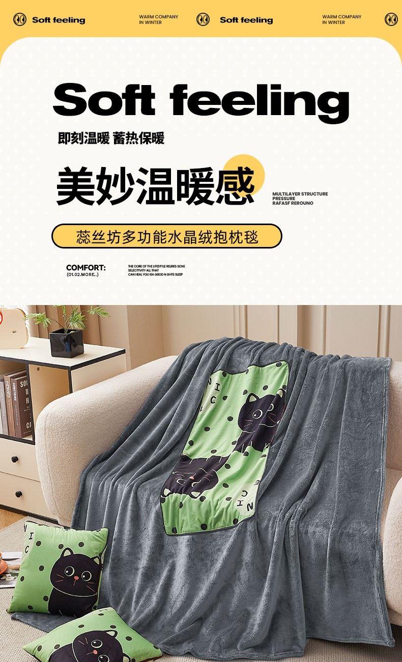 蕊丝坊家纺多功能水晶绒抱枕毯